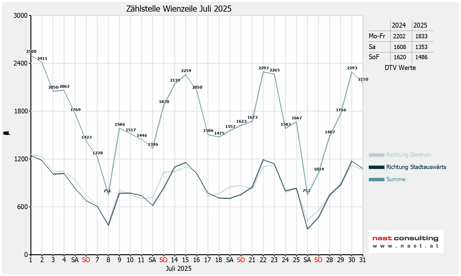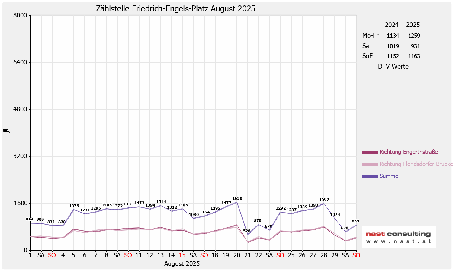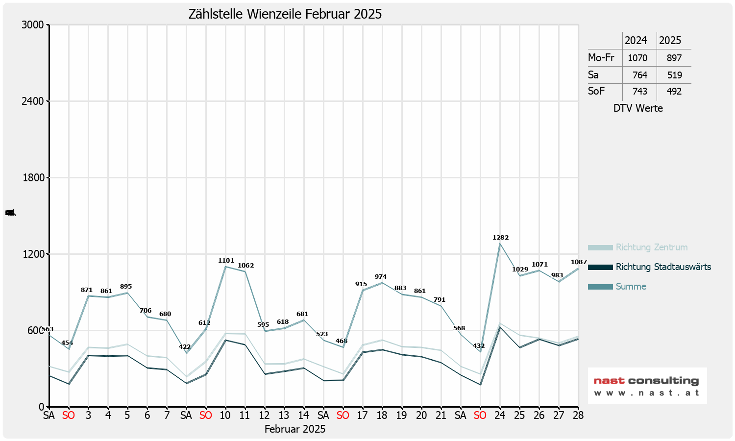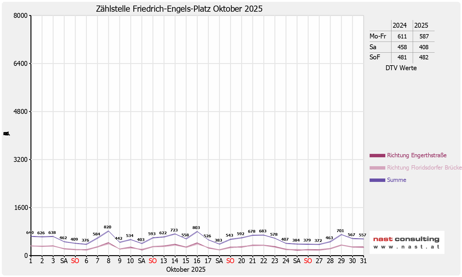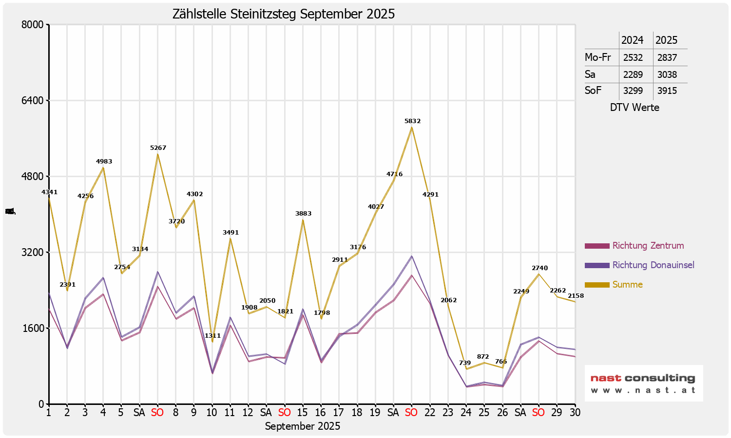 Im „Querschnitt Donau“ sind die Zählstellen Steinitzsteg, Friedrich-Engels-Platz, Maria-Resituta-Platz, Lassallestraße, Praterbrücke, Kraftwerk Freudenau inkludiert.