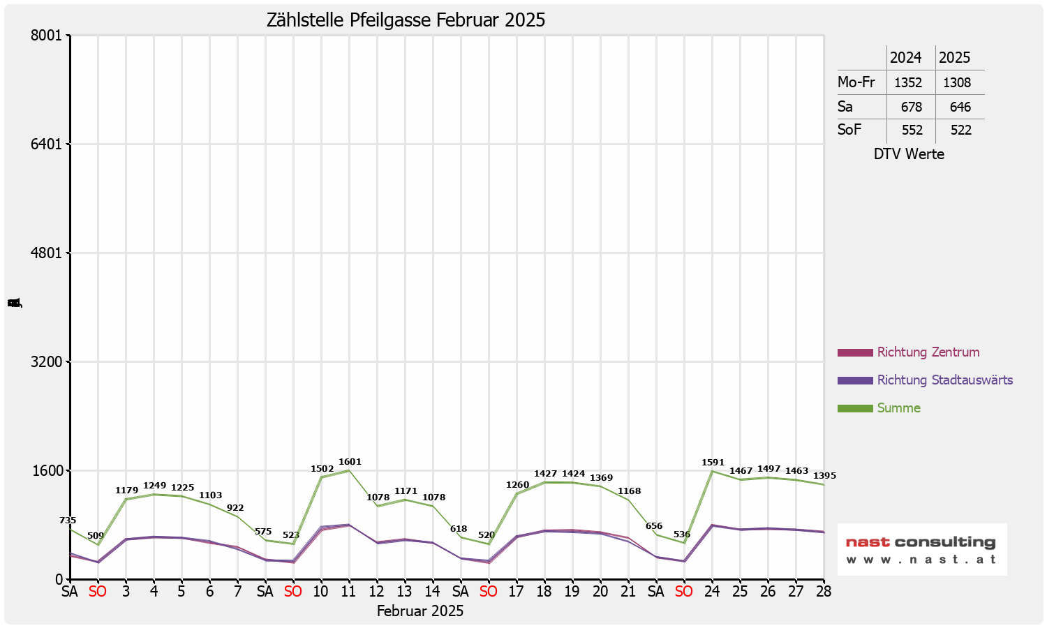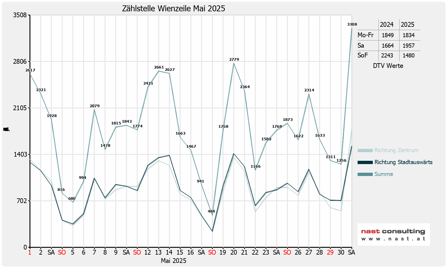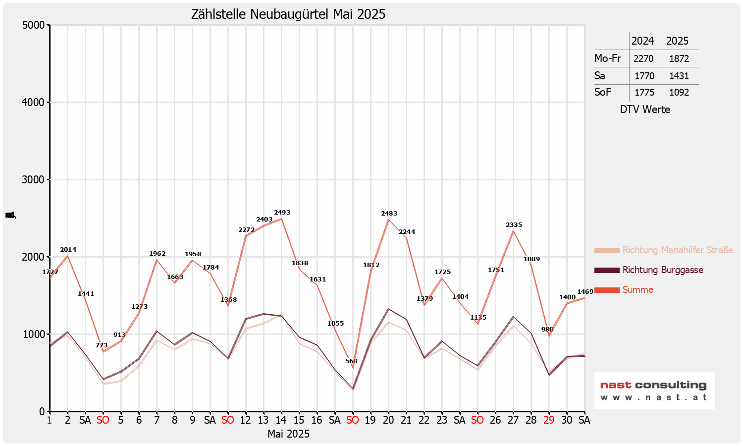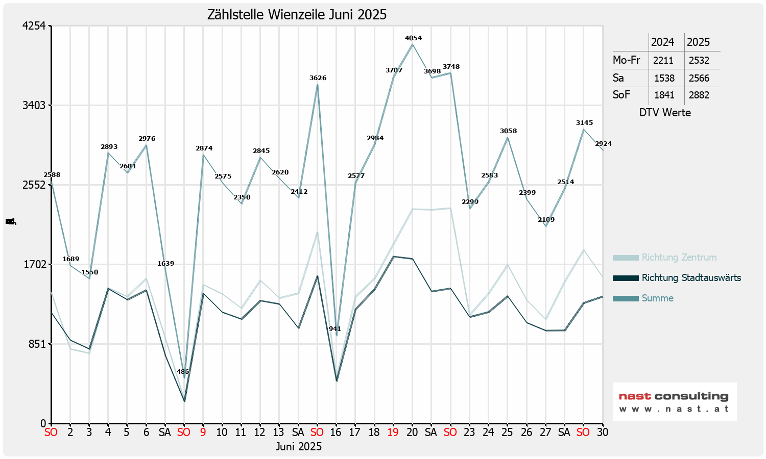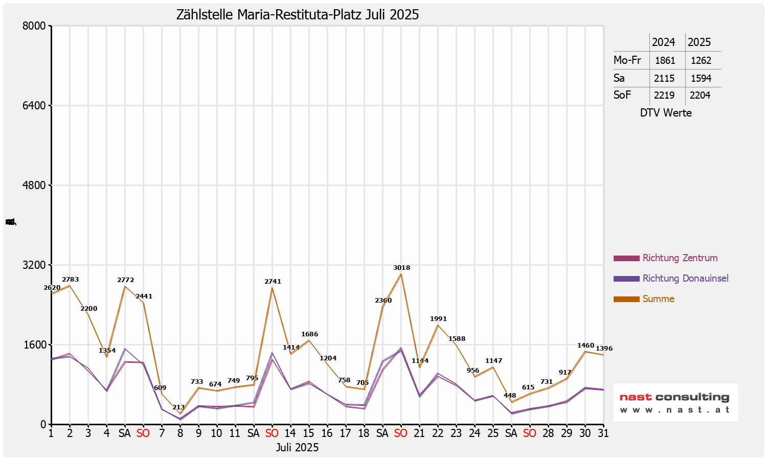 Im „Querschnitt Donau“ sind die Zählstellen Steinitzsteg, Friedrich-Engels-Platz, Maria-Resituta-Platz, Lassallestraße, Praterbrücke, Kraftwerk Freudenau inkludiert.
