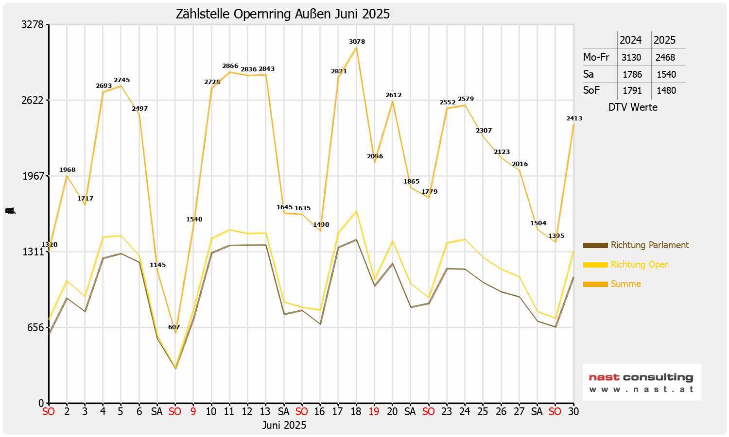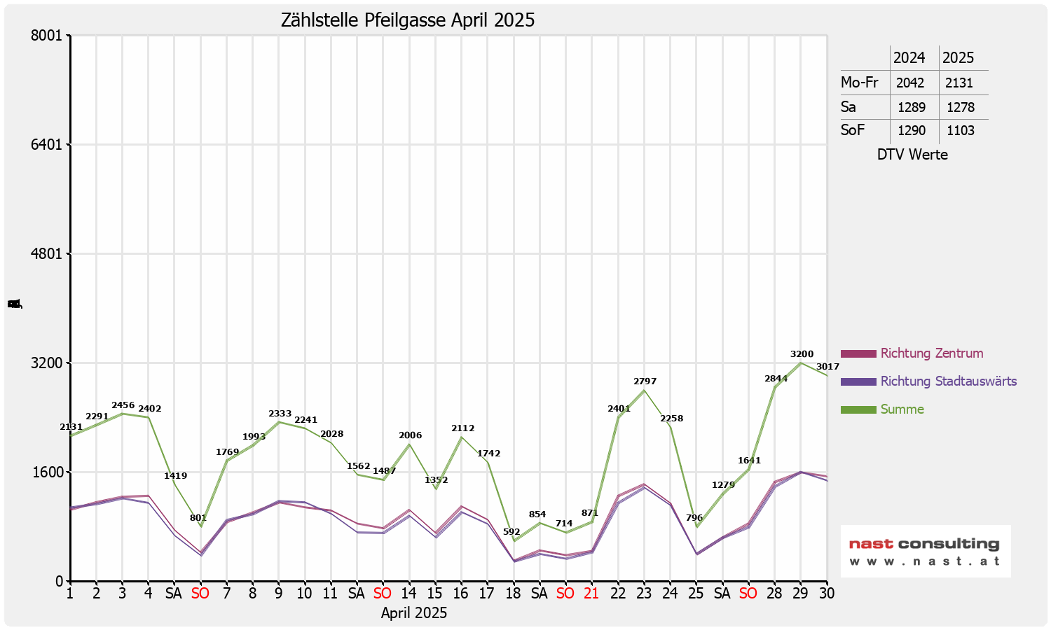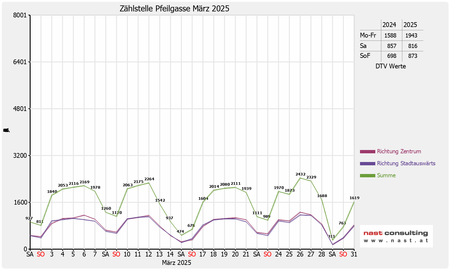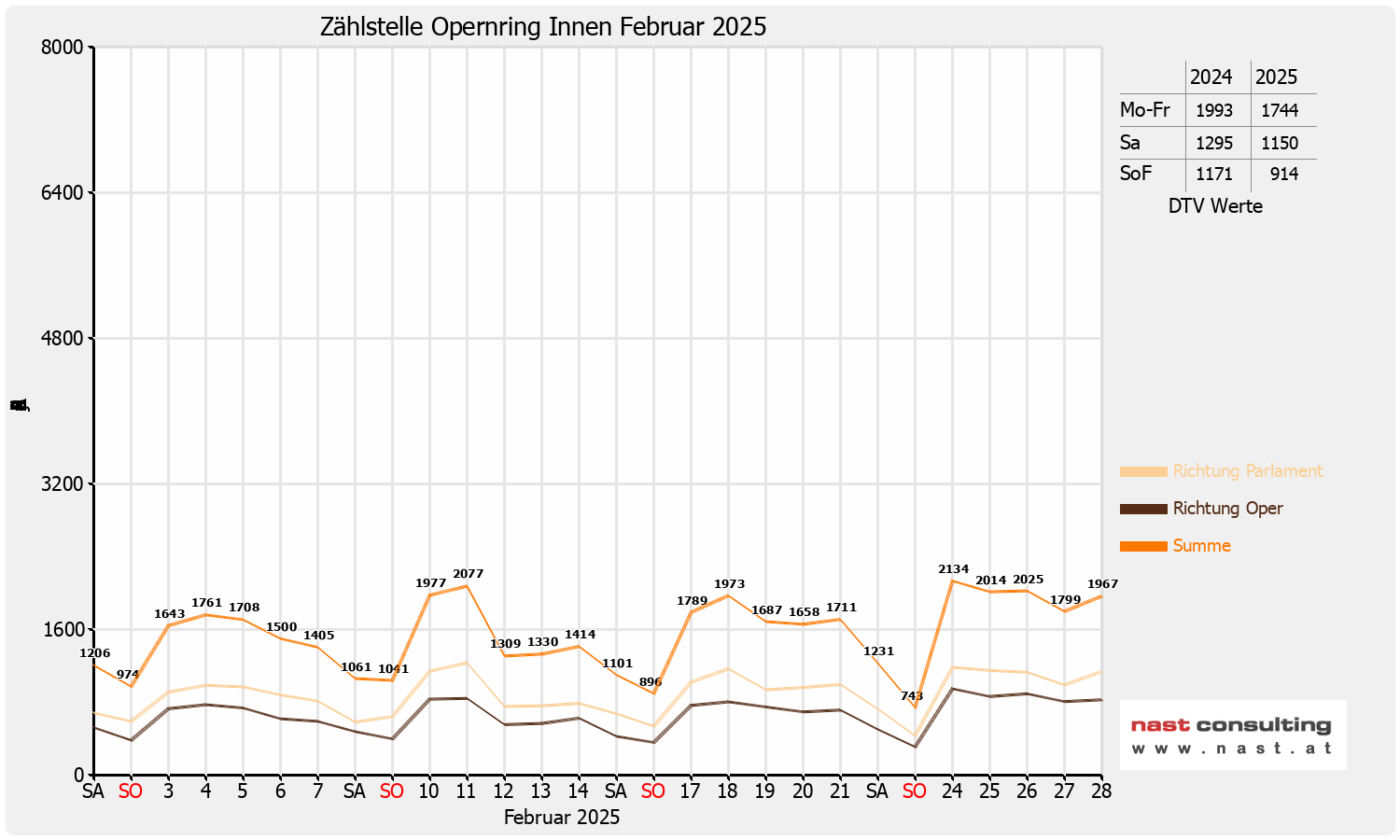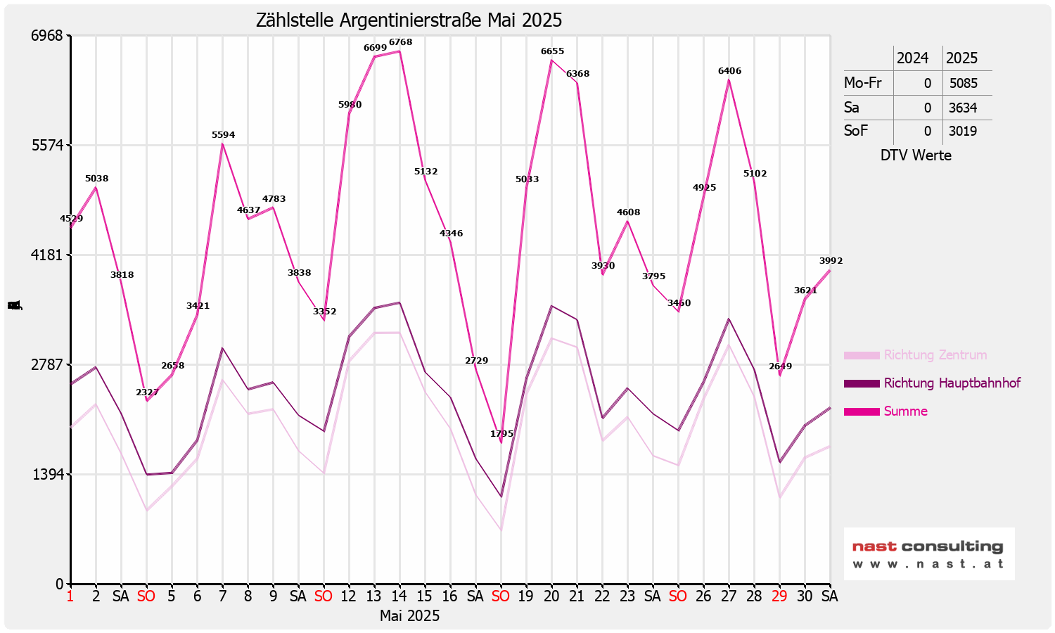 Im „Querschnitt Donau“ sind die Zählstellen Steinitzsteg, Friedrich-Engels-Platz, Maria-Resituta-Platz, Lassallestraße, Praterbrücke, Kraftwerk Freudenau inkludiert.