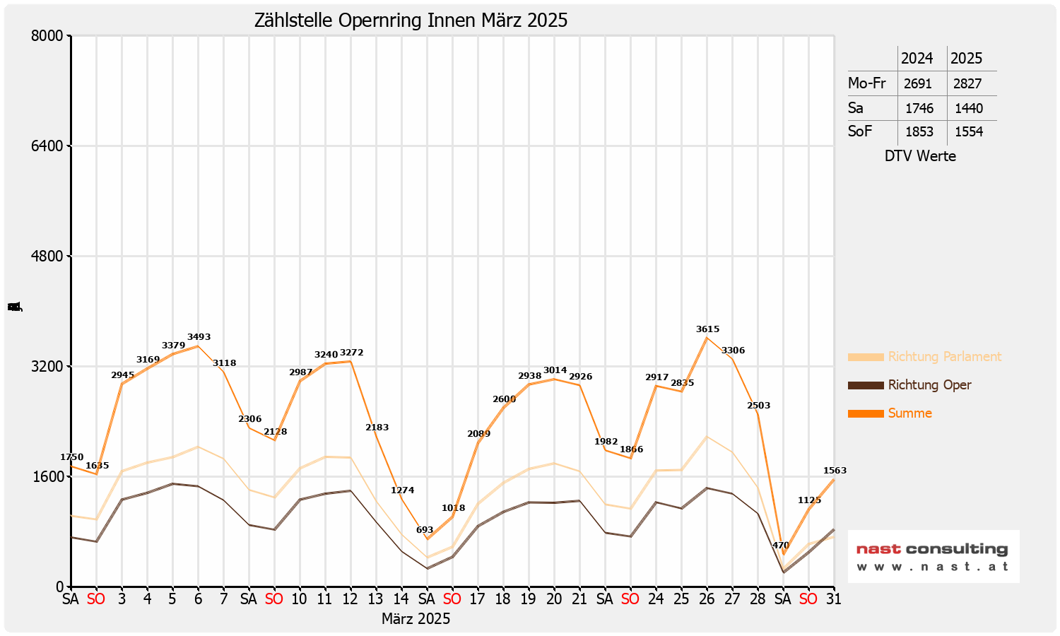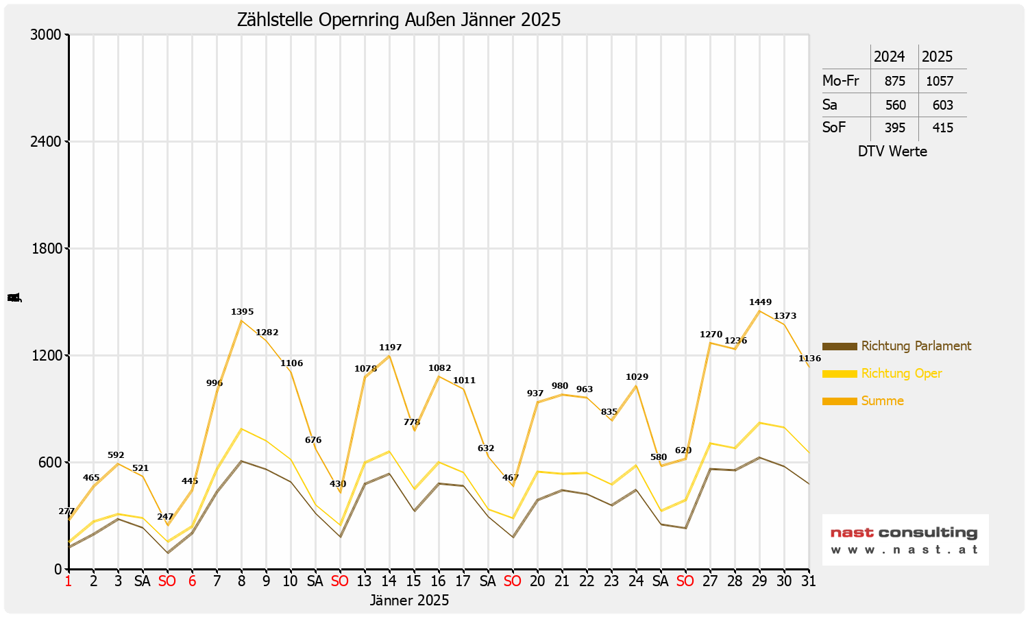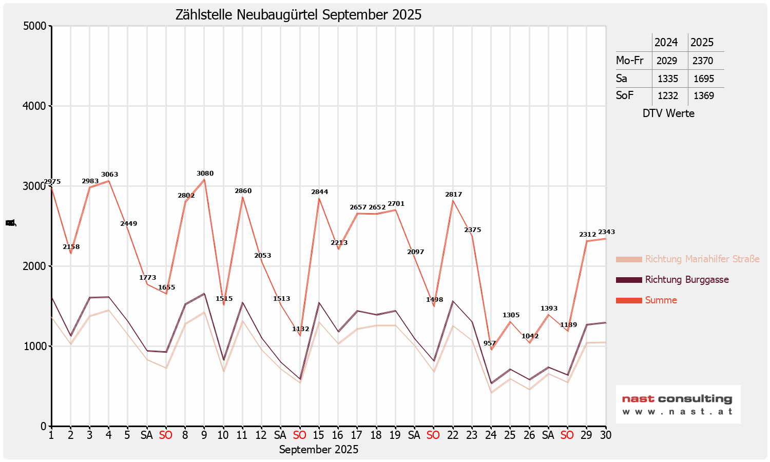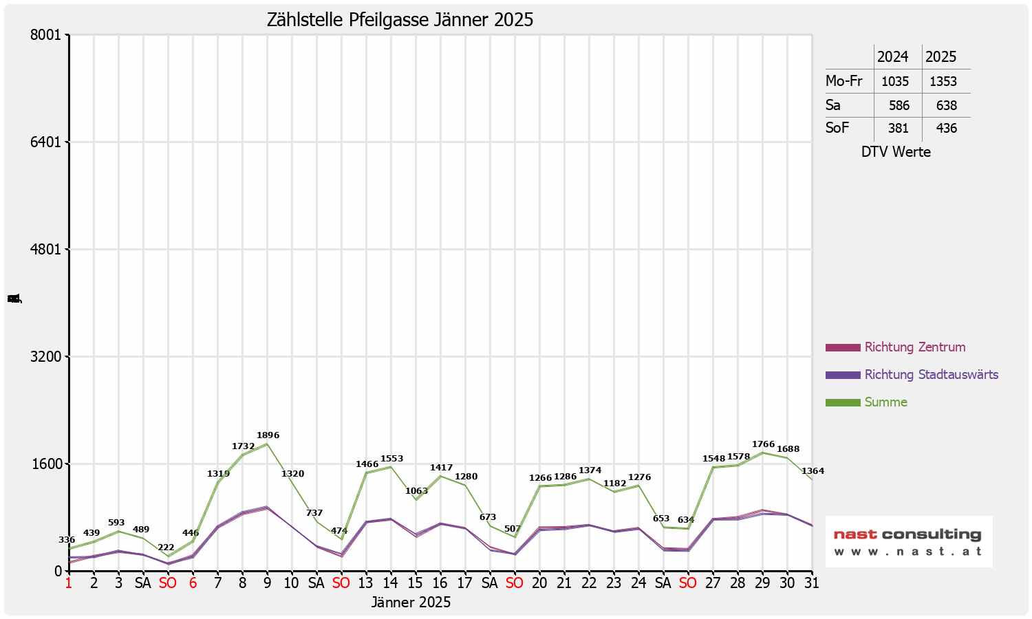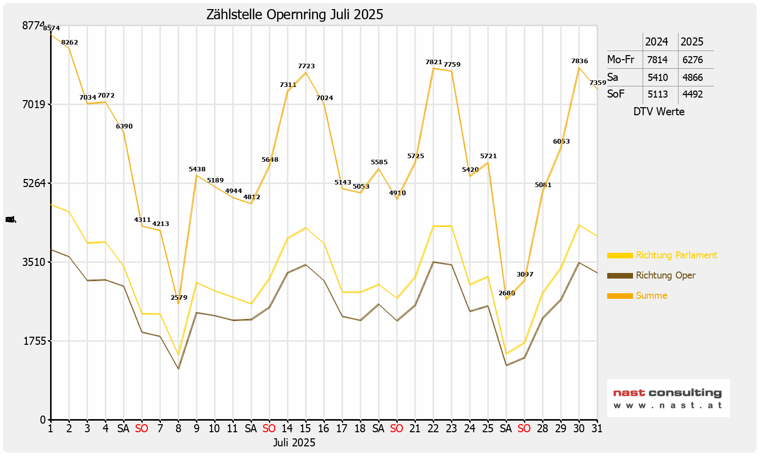 Im „Querschnitt Donau“ sind die Zählstellen Steinitzsteg, Friedrich-Engels-Platz, Maria-Resituta-Platz, Lassallestraße, Praterbrücke, Kraftwerk Freudenau inkludiert.
