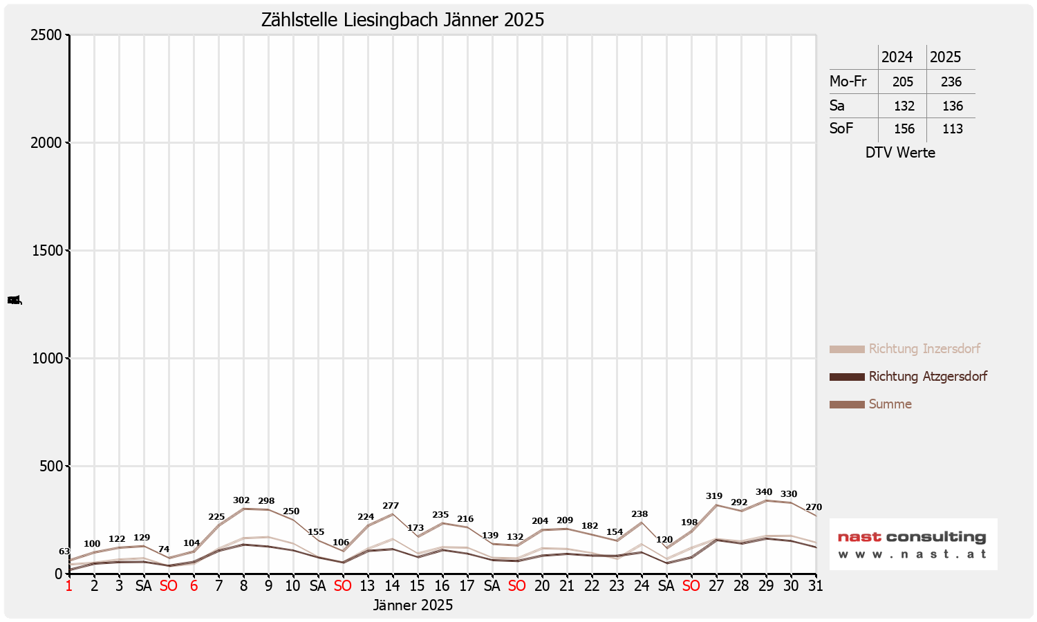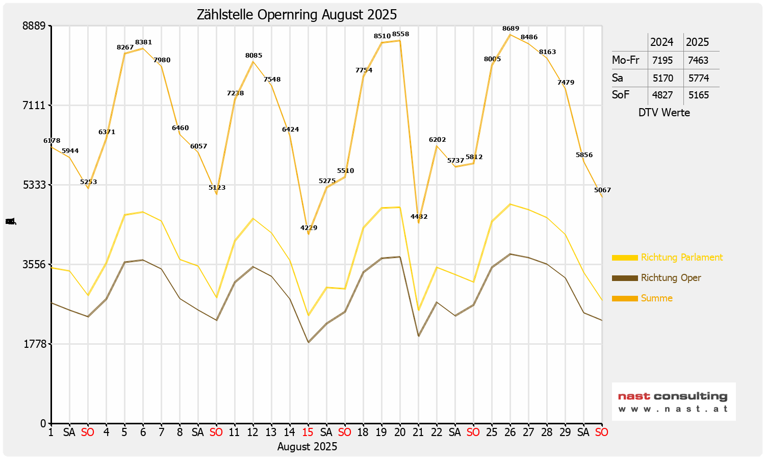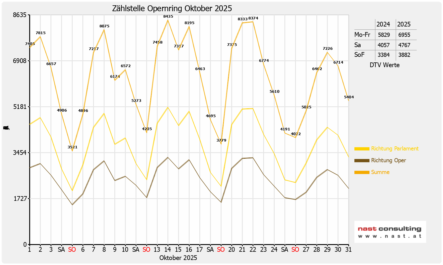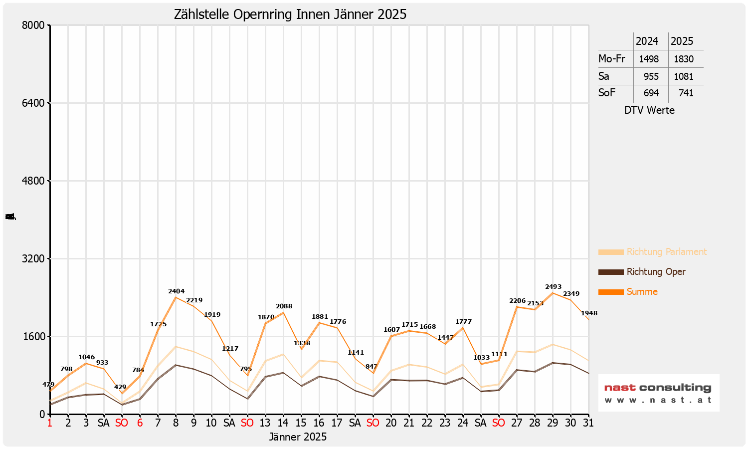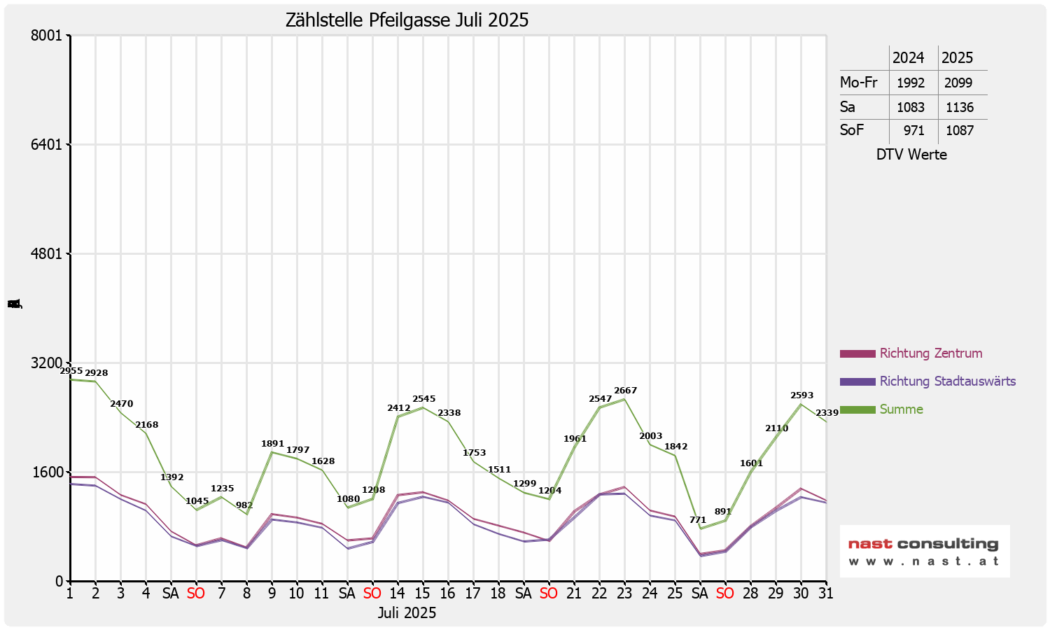 Im „Querschnitt Donau“ sind die Zählstellen Steinitzsteg, Friedrich-Engels-Platz, Maria-Resituta-Platz, Lassallestraße, Praterbrücke, Kraftwerk Freudenau inkludiert.