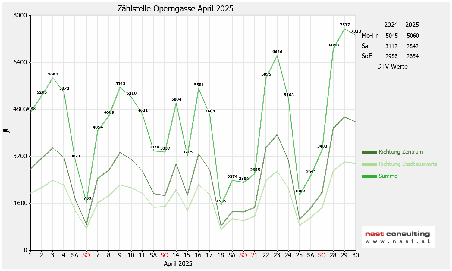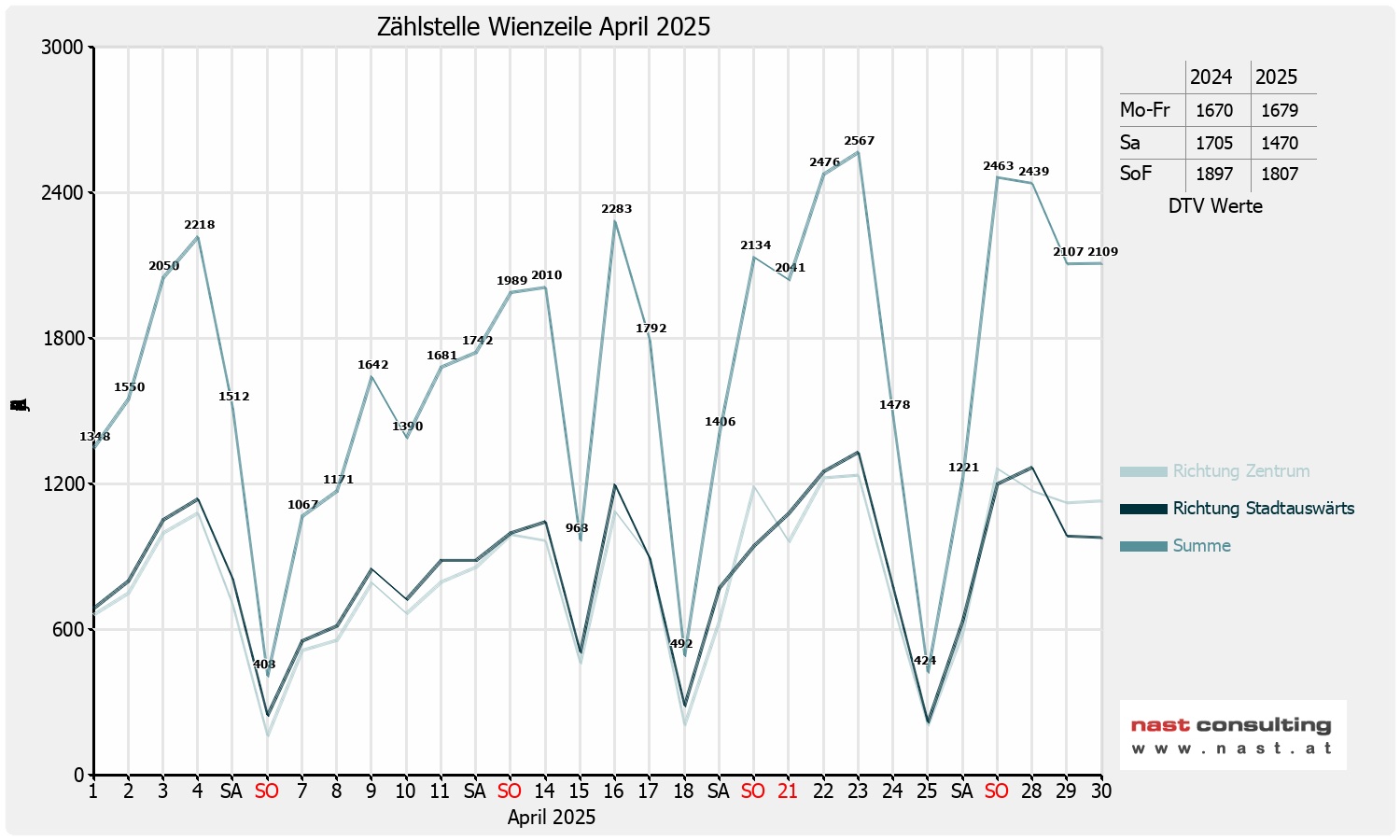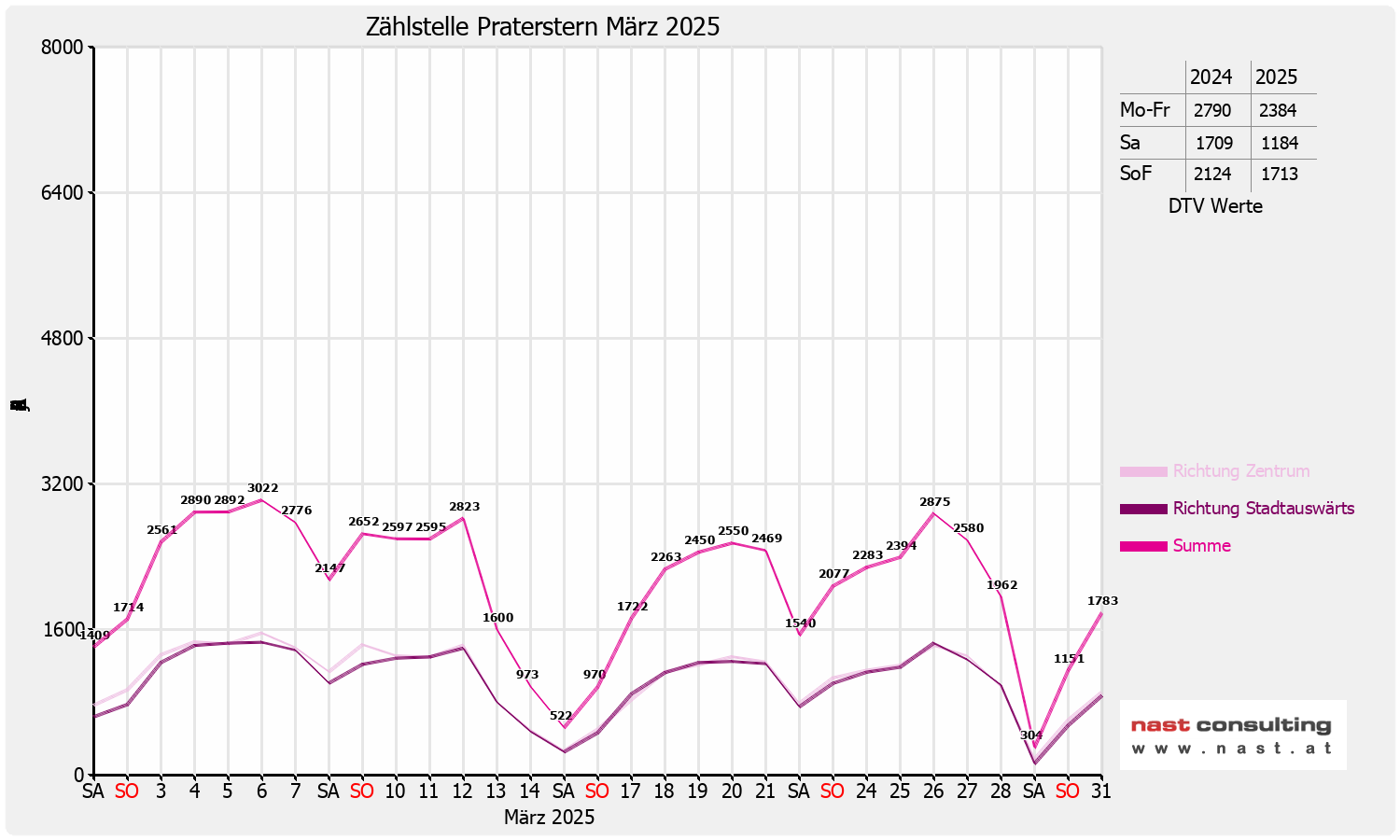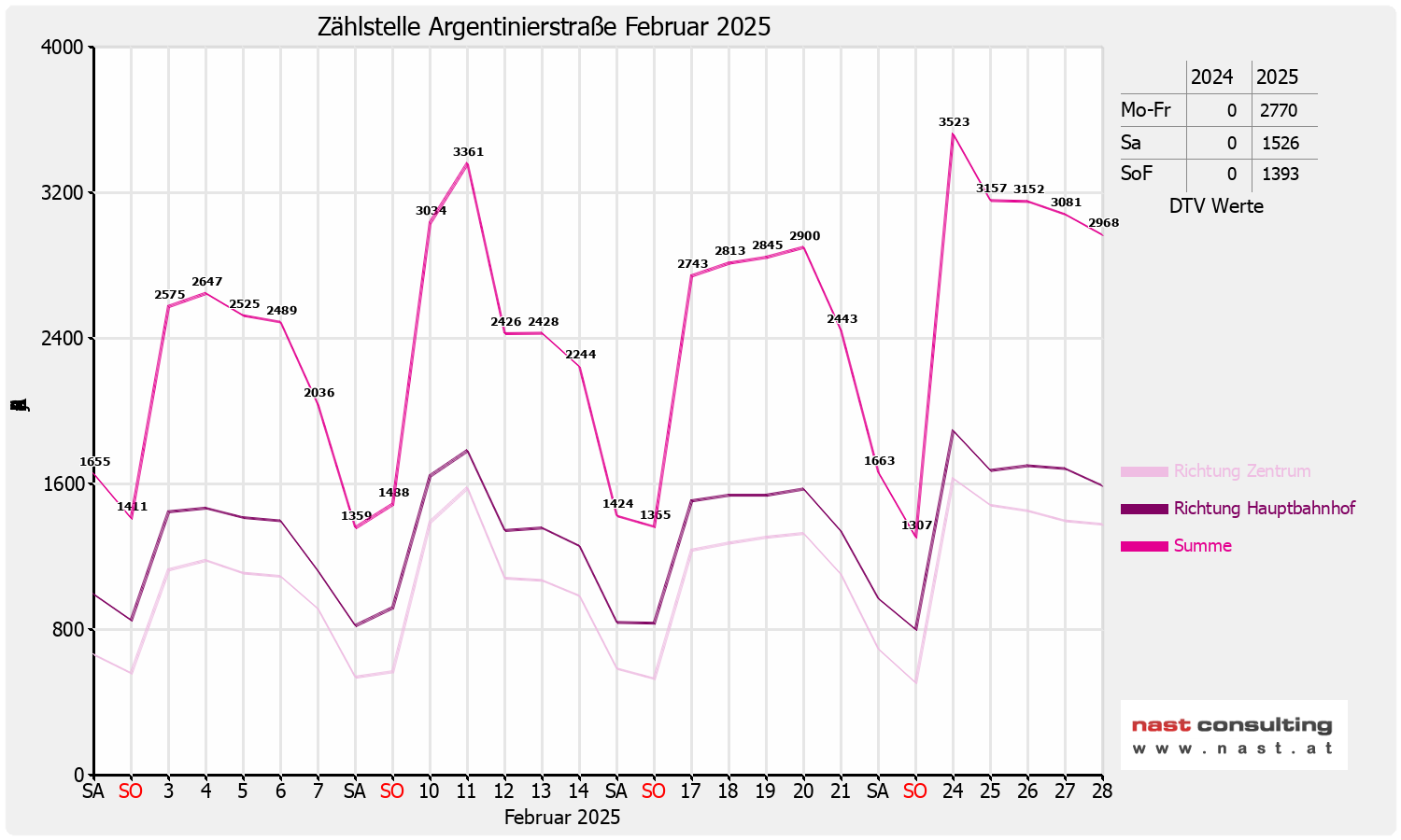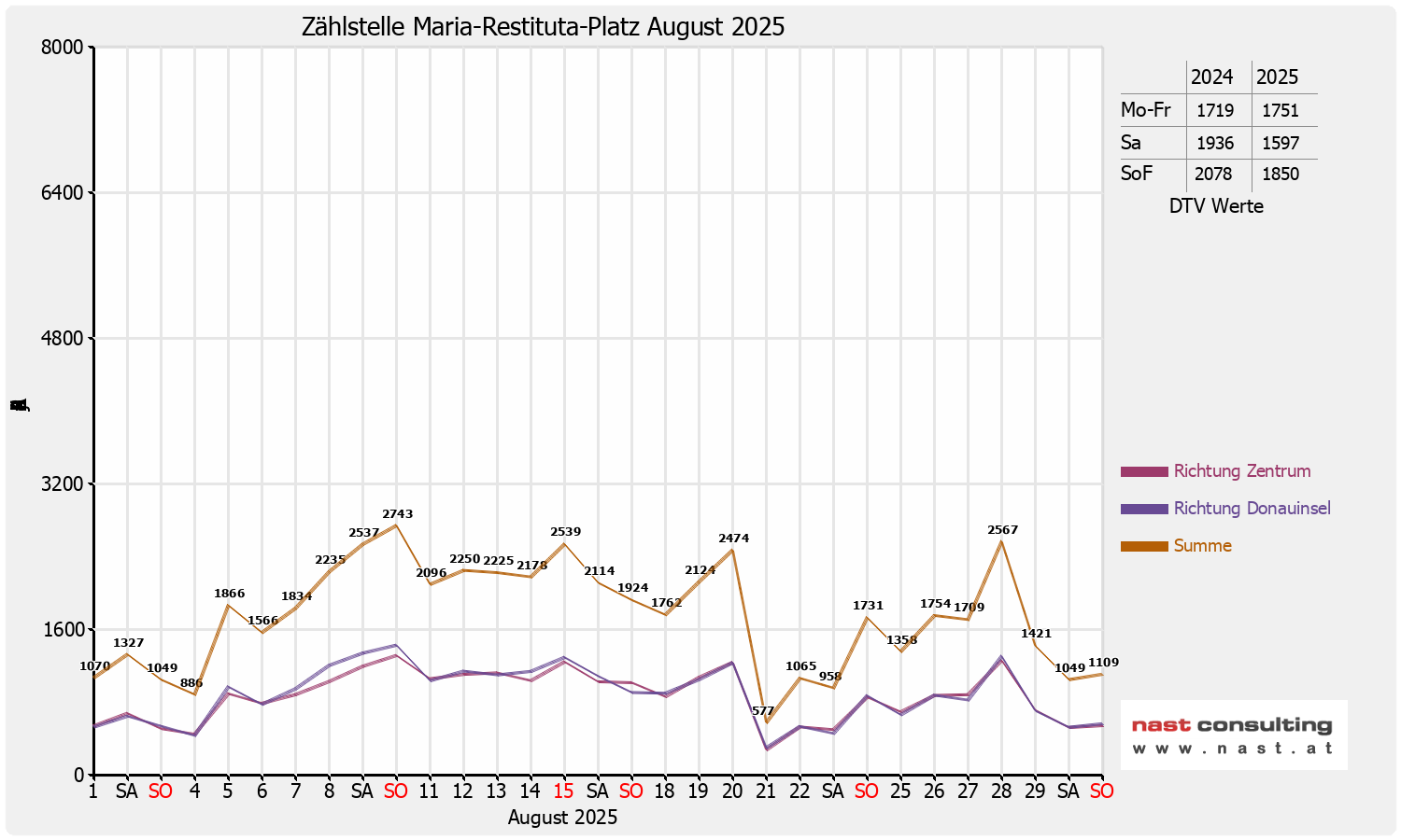 Im „Querschnitt Donau“ sind die Zählstellen Steinitzsteg, Friedrich-Engels-Platz, Maria-Resituta-Platz, Lassallestraße, Praterbrücke, Kraftwerk Freudenau inkludiert.