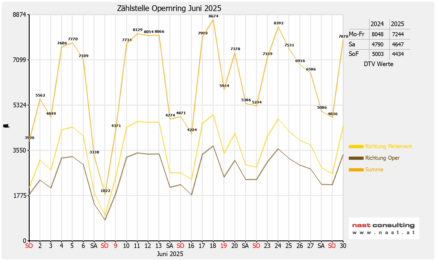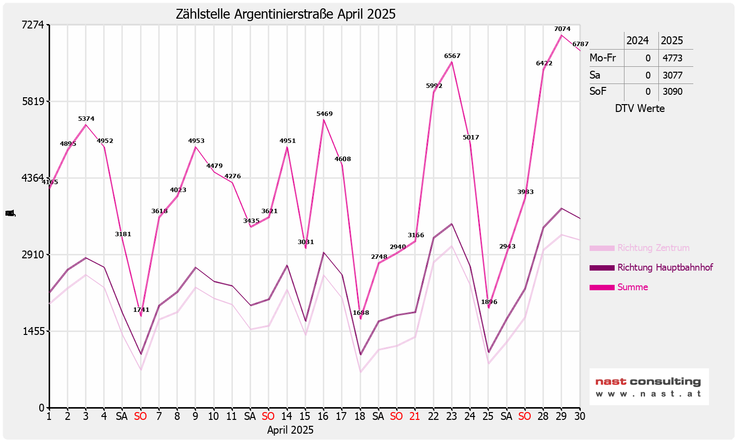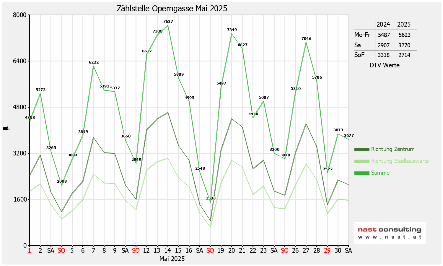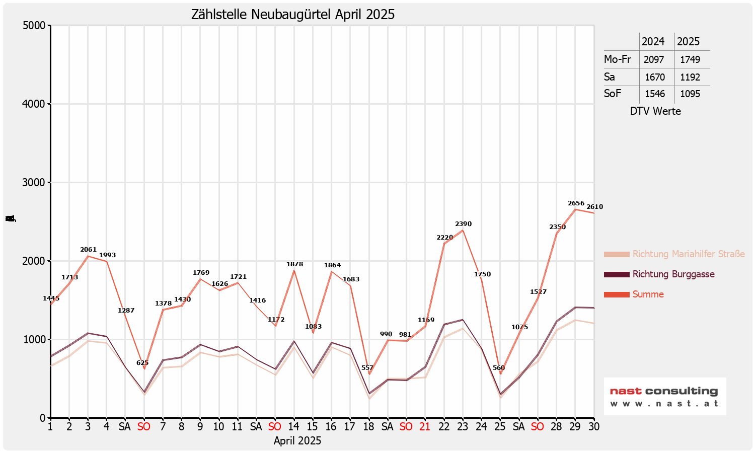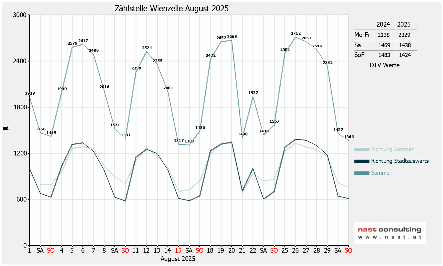 Im „Querschnitt Donau“ sind die Zählstellen Steinitzsteg, Friedrich-Engels-Platz, Maria-Resituta-Platz, Lassallestraße, Praterbrücke, Kraftwerk Freudenau inkludiert.