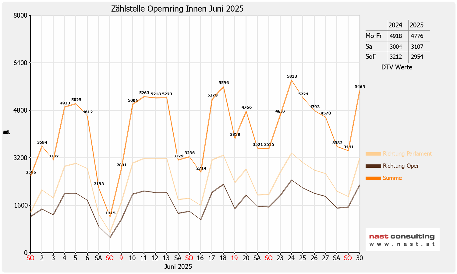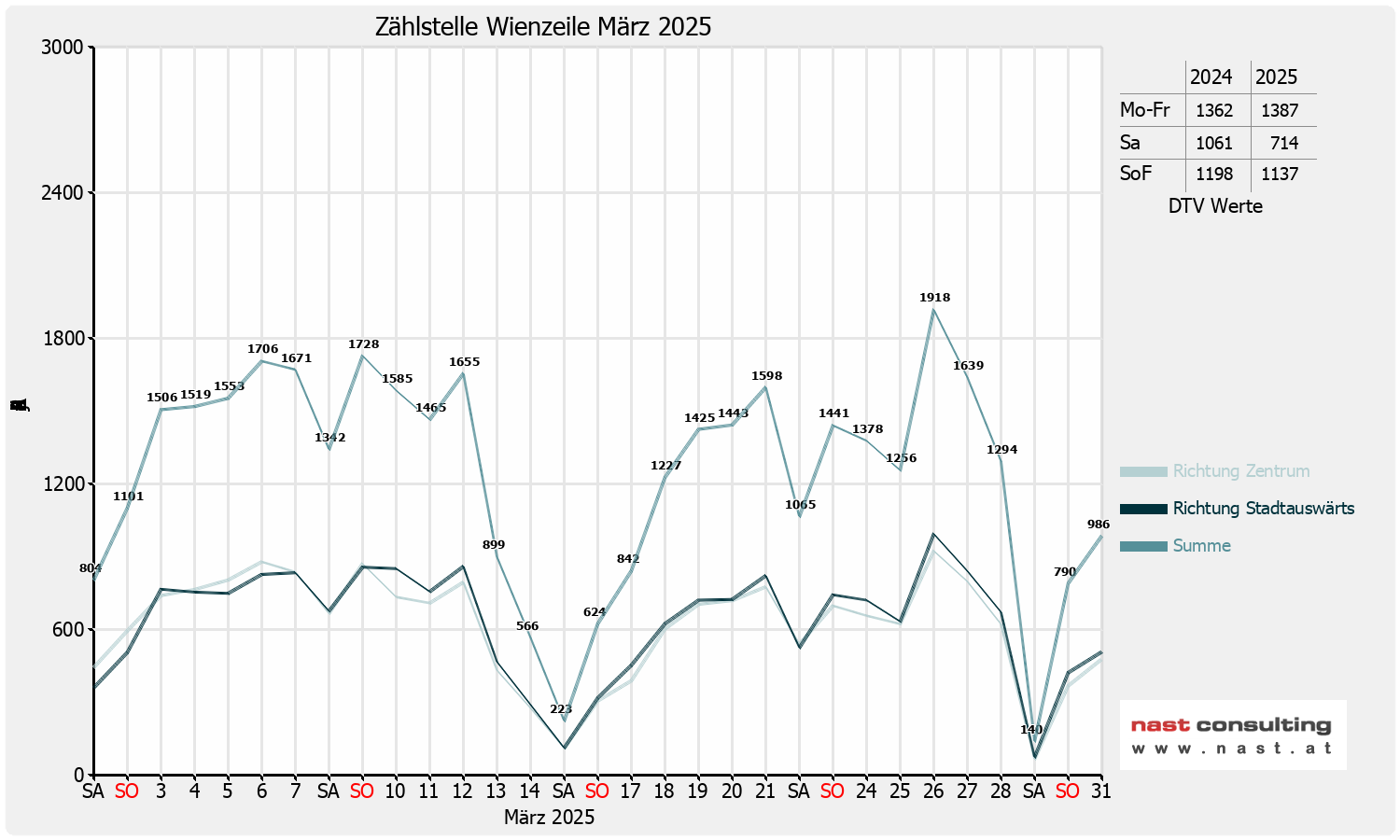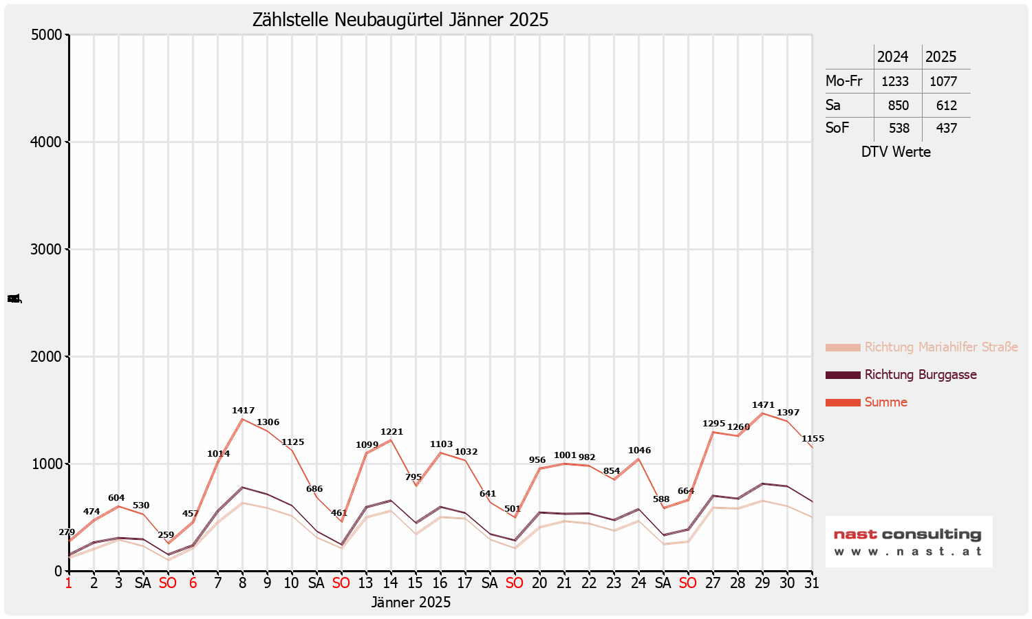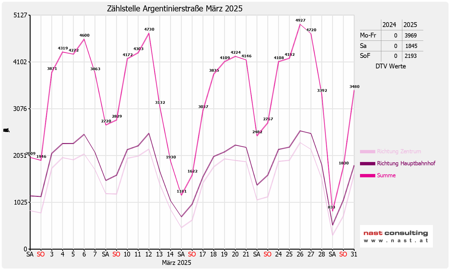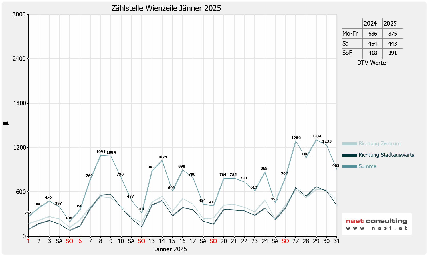 Im „Querschnitt Donau“ sind die Zählstellen Steinitzsteg, Friedrich-Engels-Platz, Maria-Resituta-Platz, Lassallestraße, Praterbrücke, Kraftwerk Freudenau inkludiert.