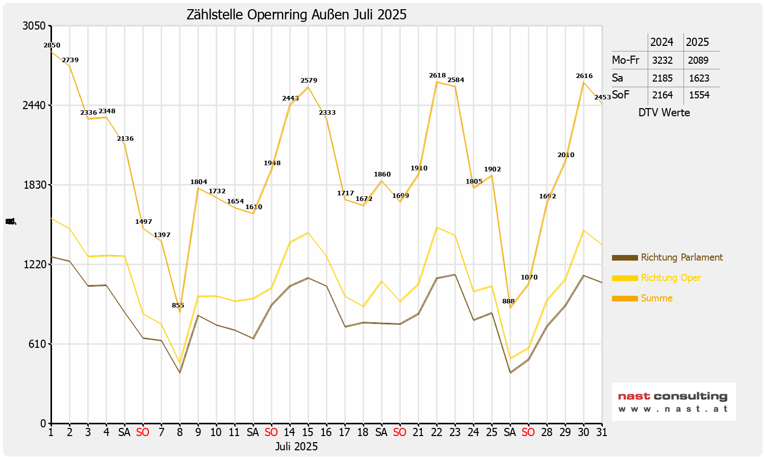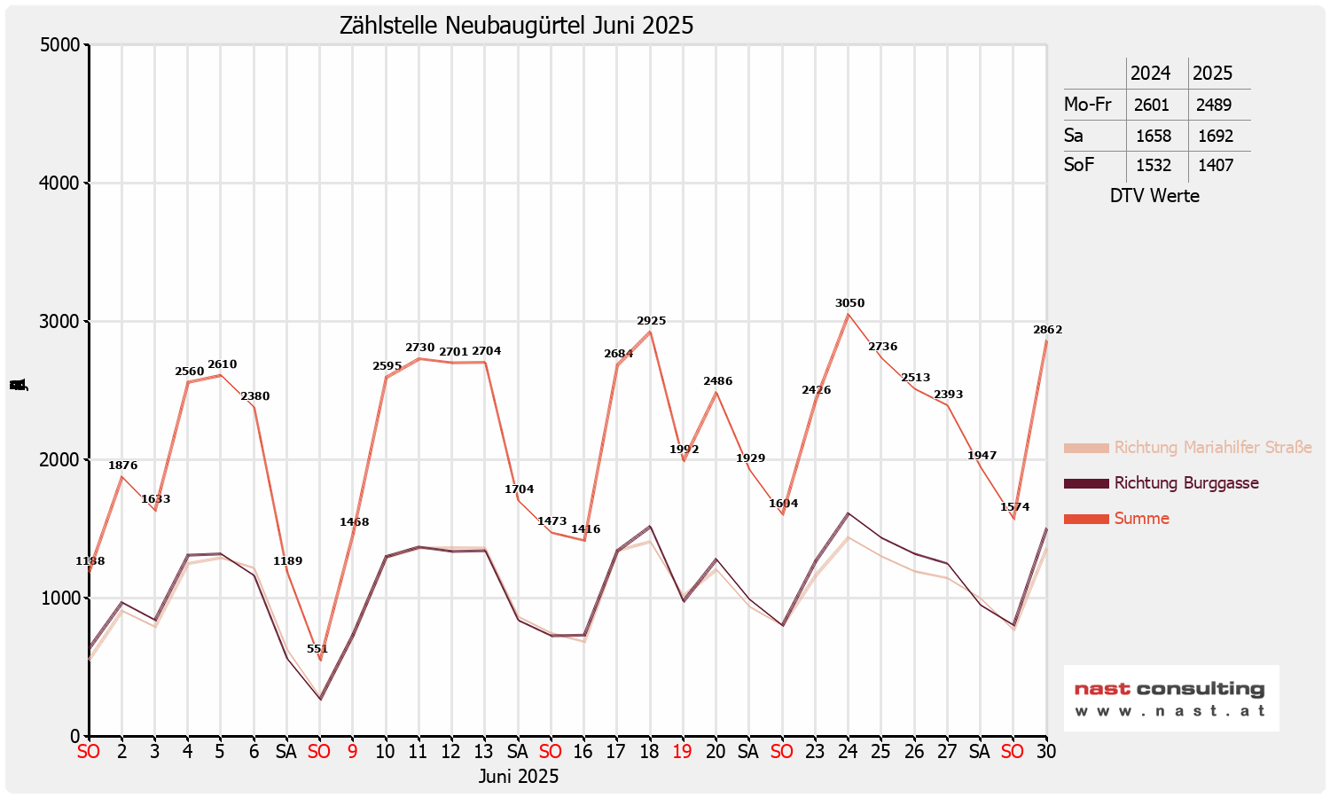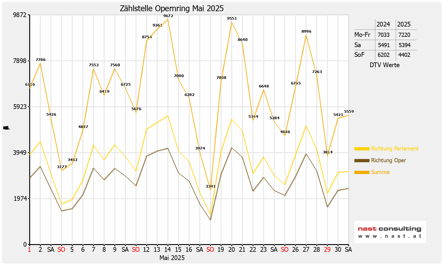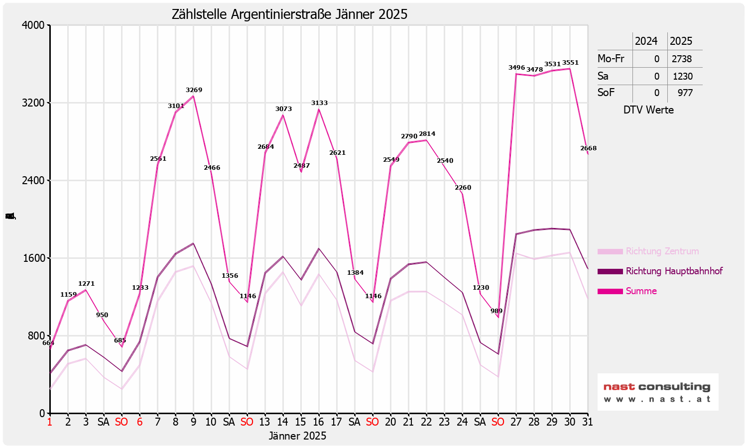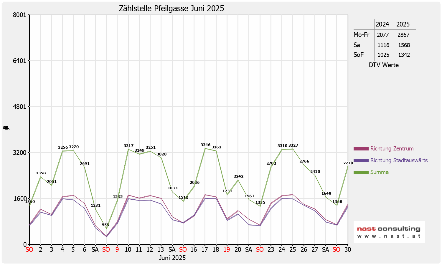 Im „Querschnitt Donau“ sind die Zählstellen Steinitzsteg, Friedrich-Engels-Platz, Maria-Resituta-Platz, Lassallestraße, Praterbrücke, Kraftwerk Freudenau inkludiert.