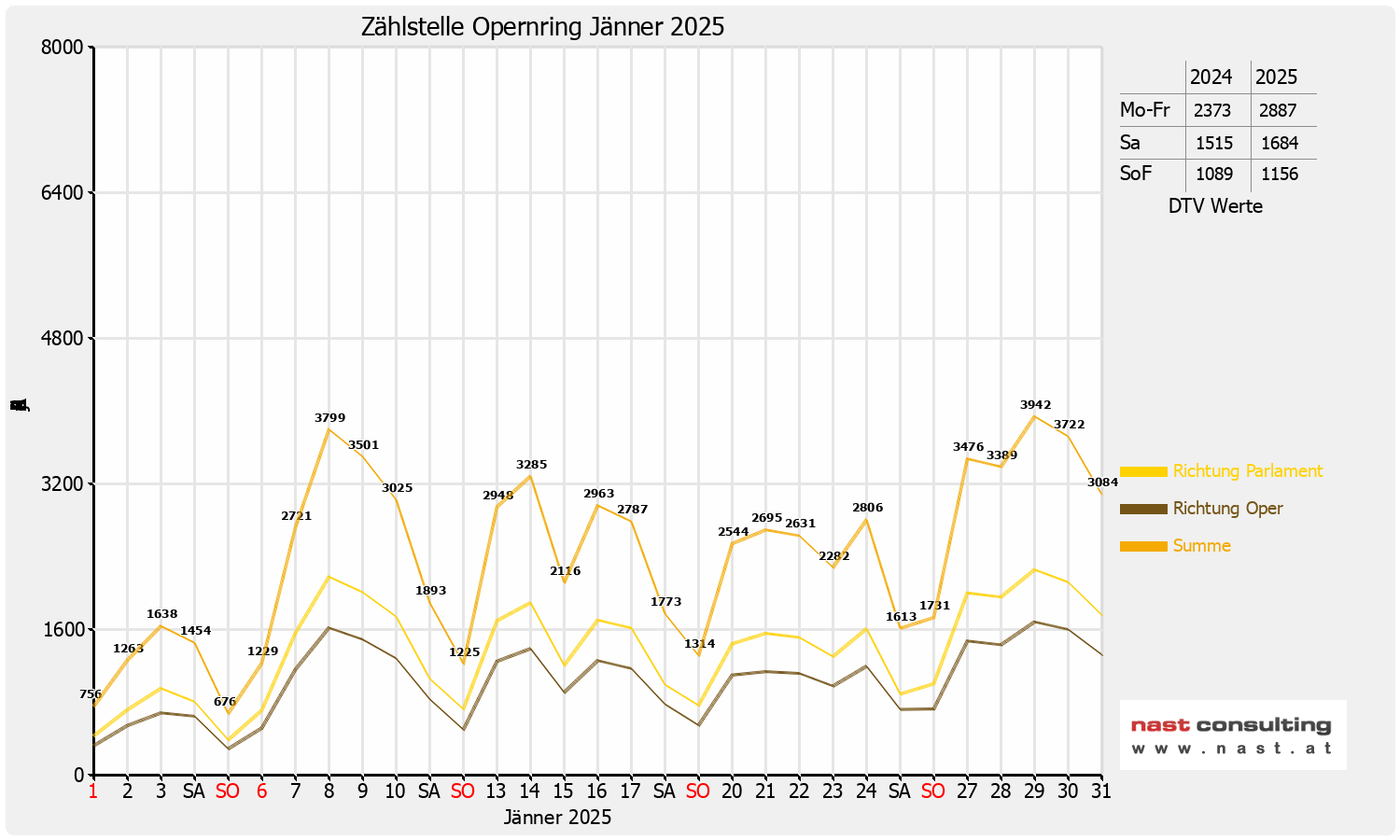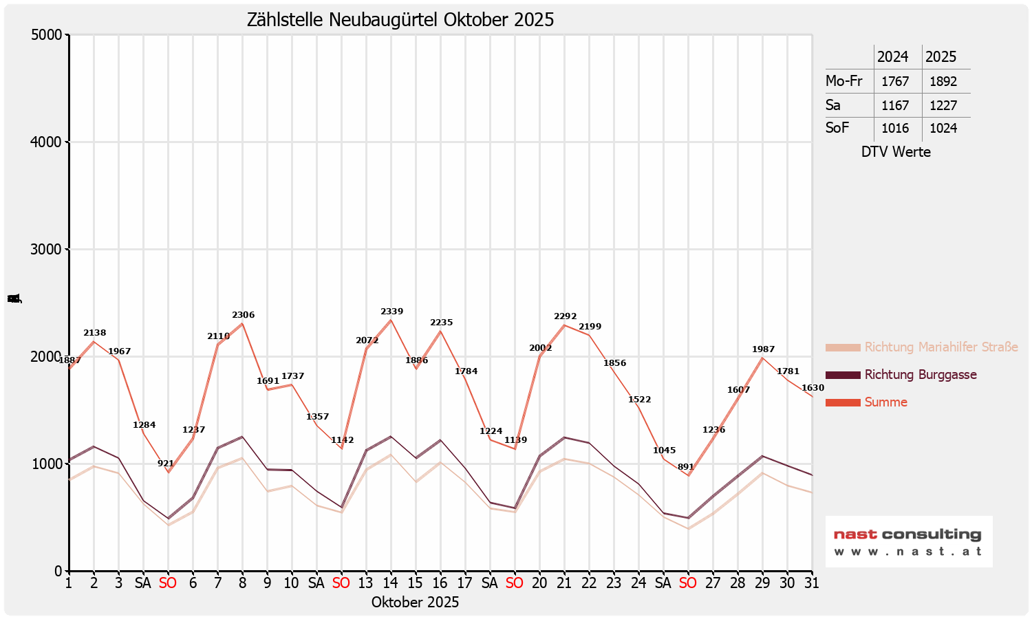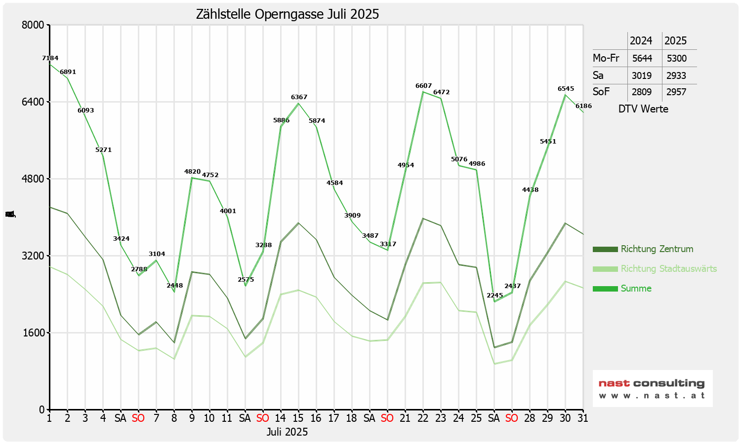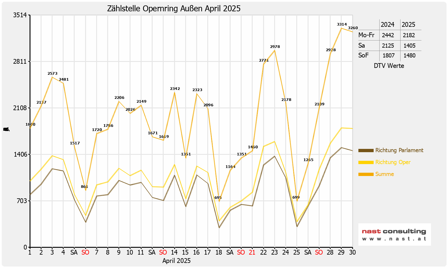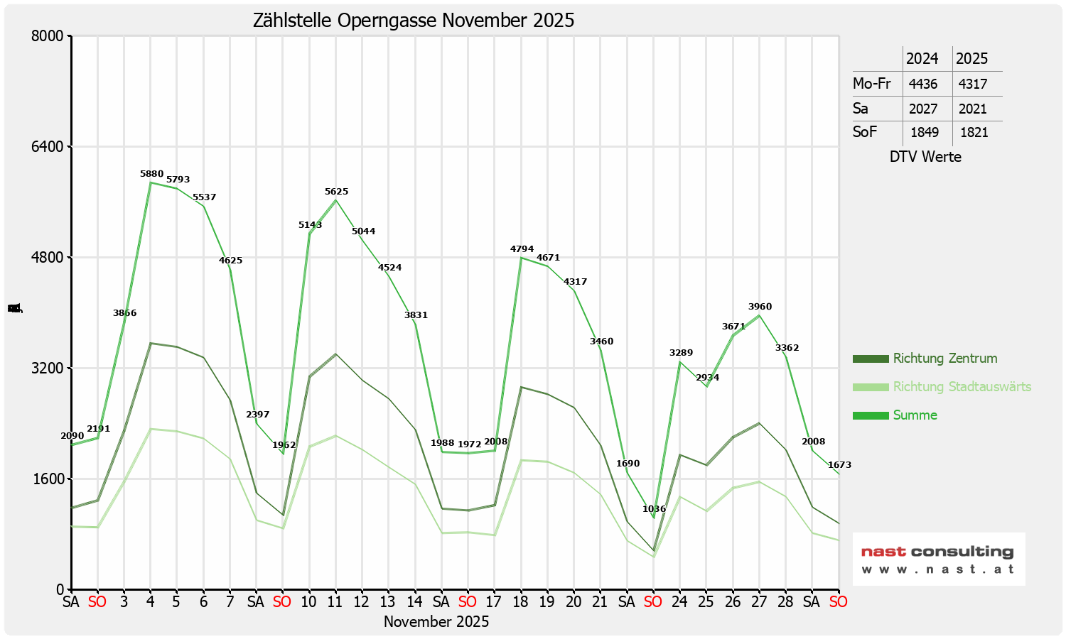 Im „Querschnitt Donau“ sind die Zählstellen Steinitzsteg, Friedrich-Engels-Platz, Maria-Resituta-Platz, Lassallestraße, Praterbrücke, Kraftwerk Freudenau inkludiert.