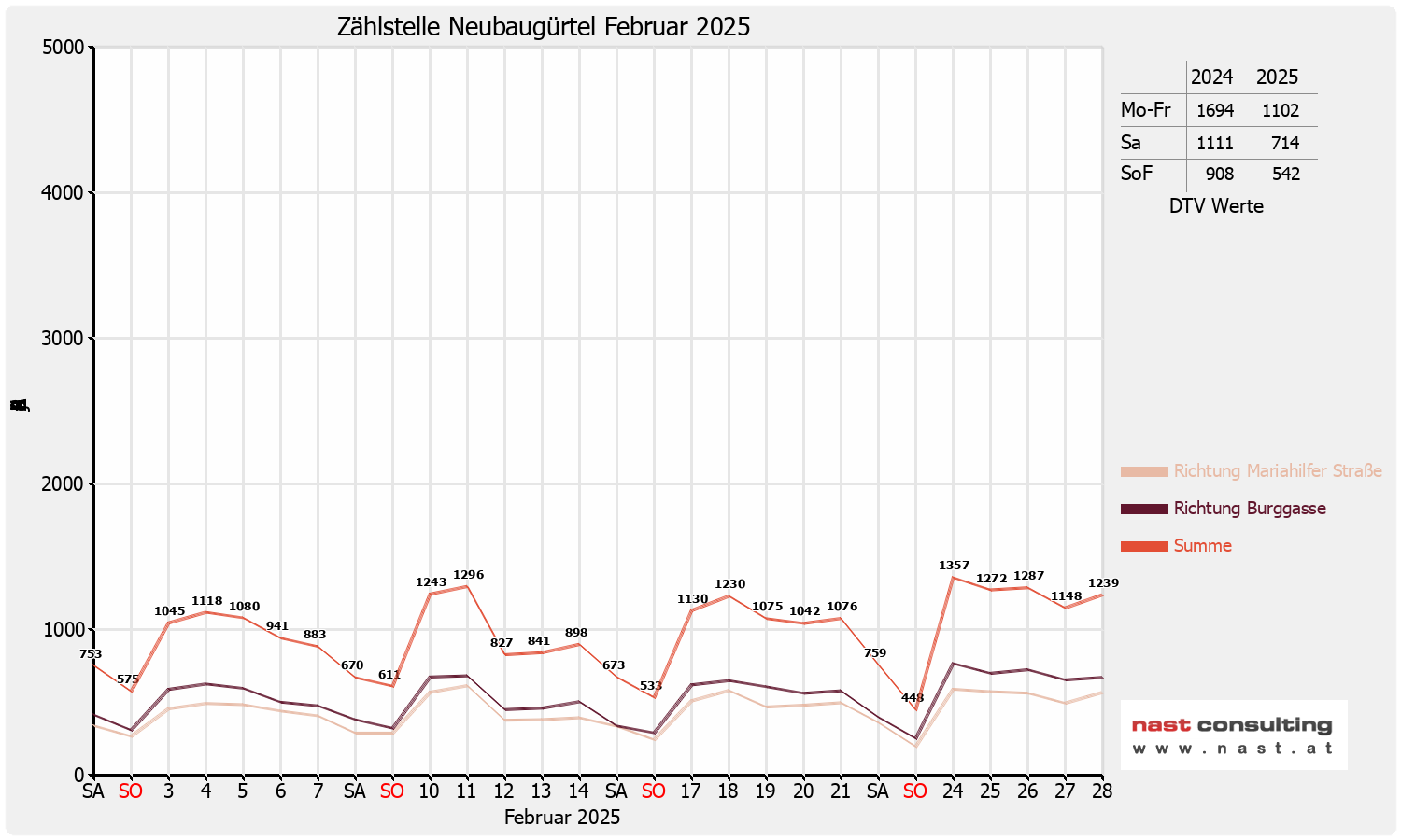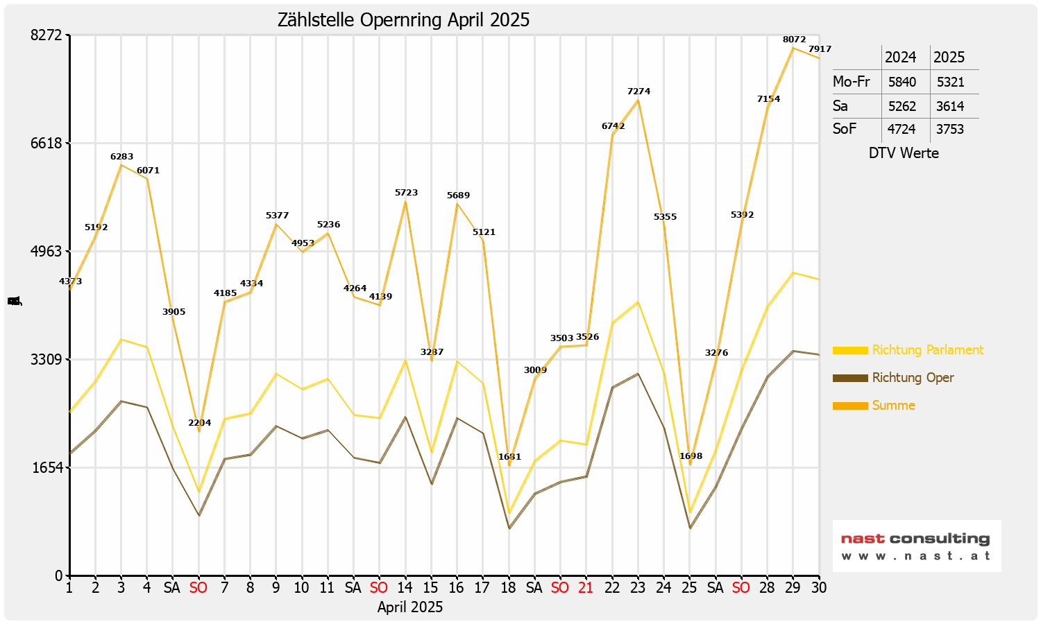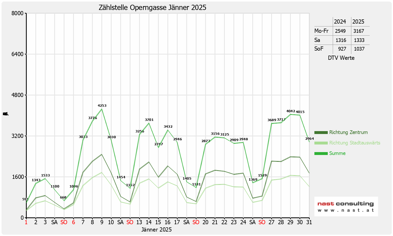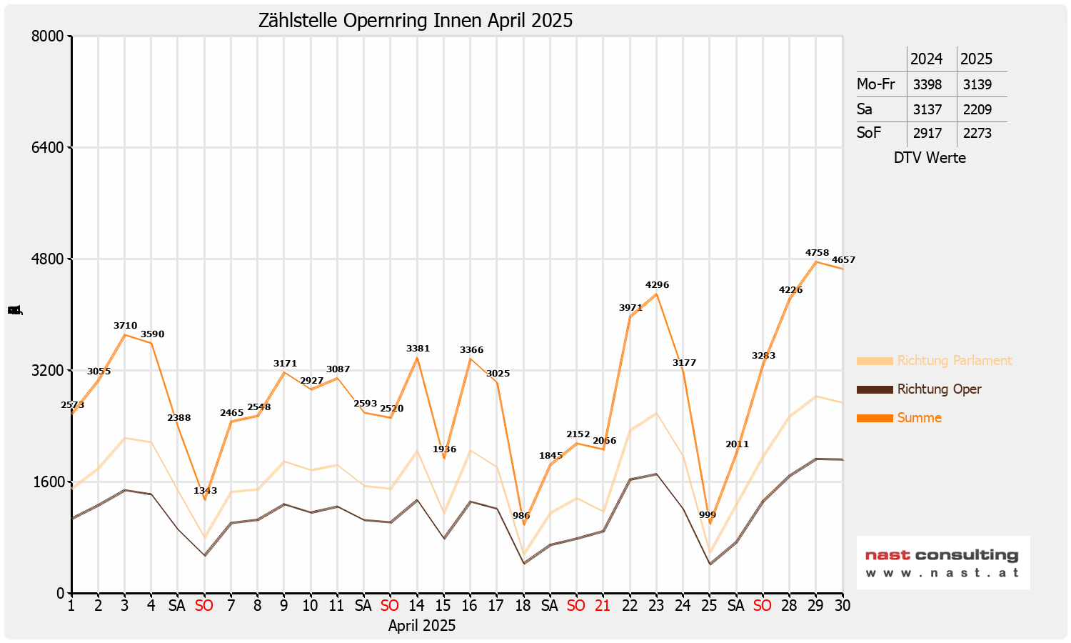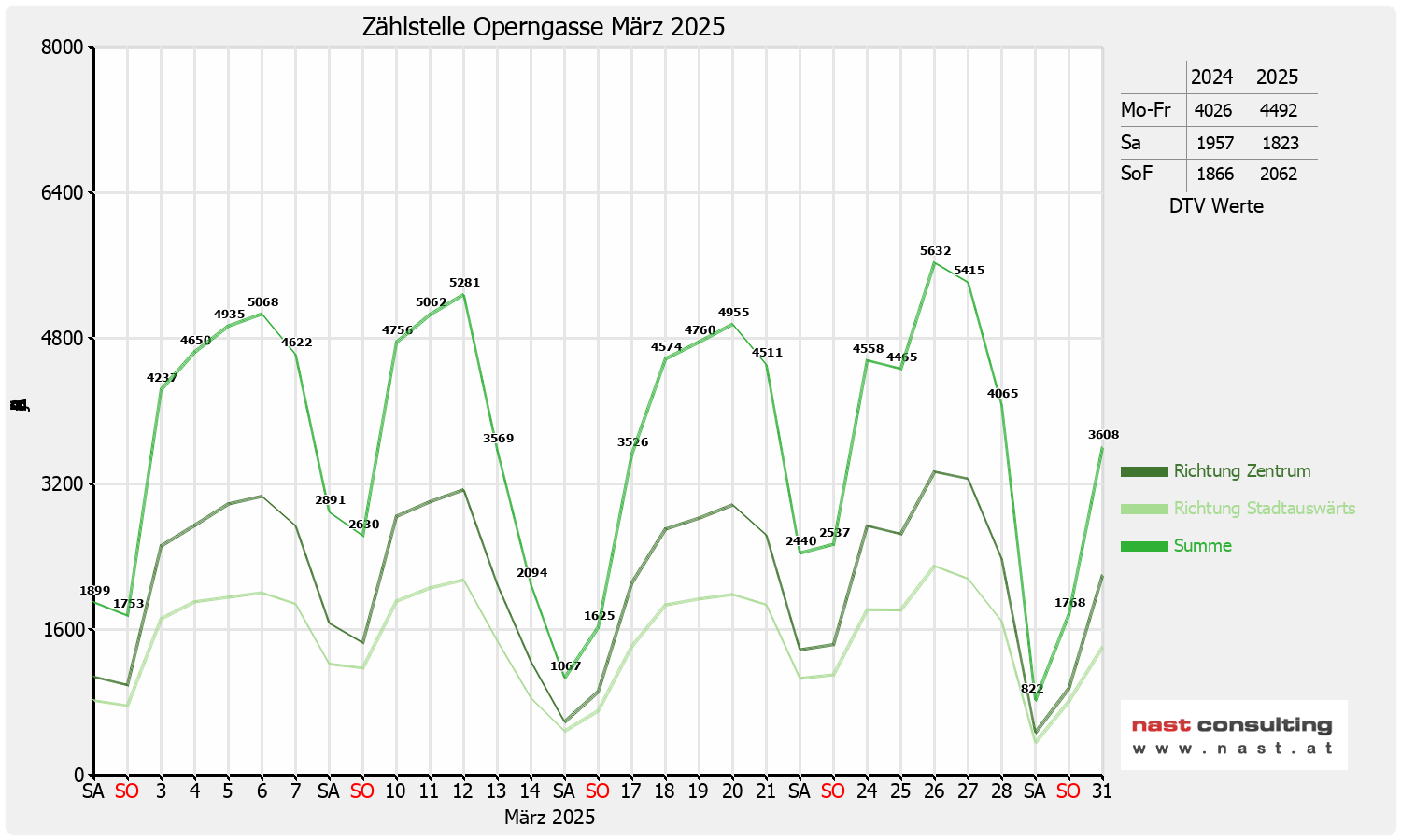Im „Querschnitt Donau“ sind die Zählstellen Steinitzsteg, Friedrich-Engels-Platz, Maria-Resituta-Platz, Lassallestraße, Praterbrücke, Kraftwerk Freudenau inkludiert.