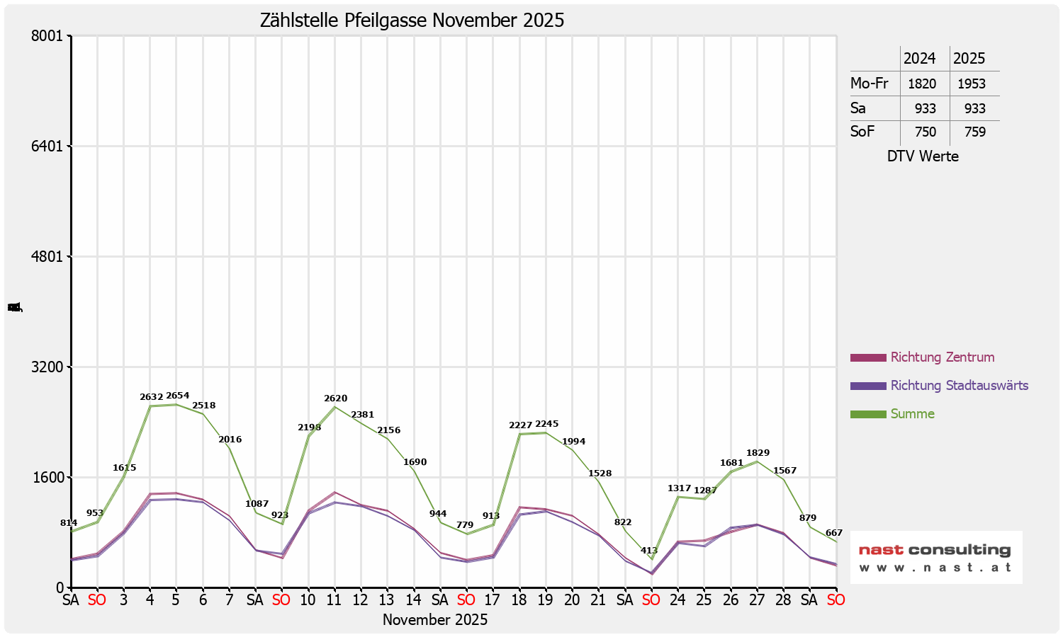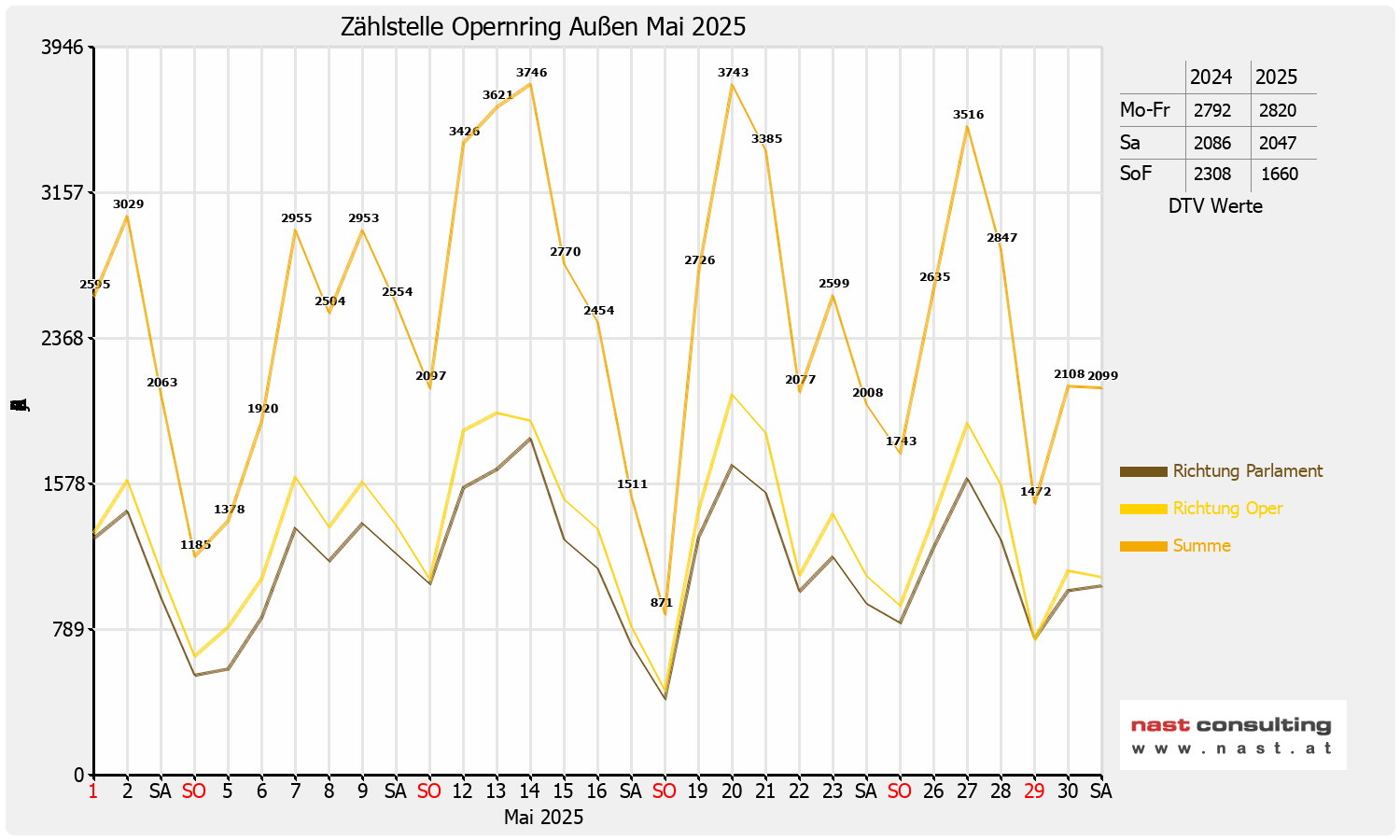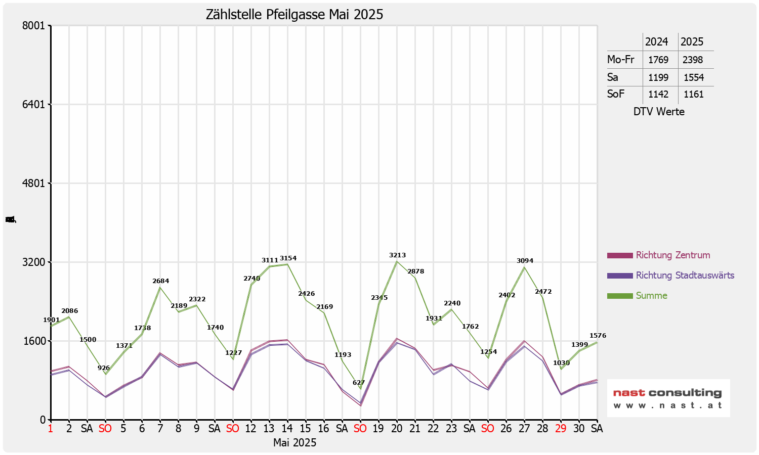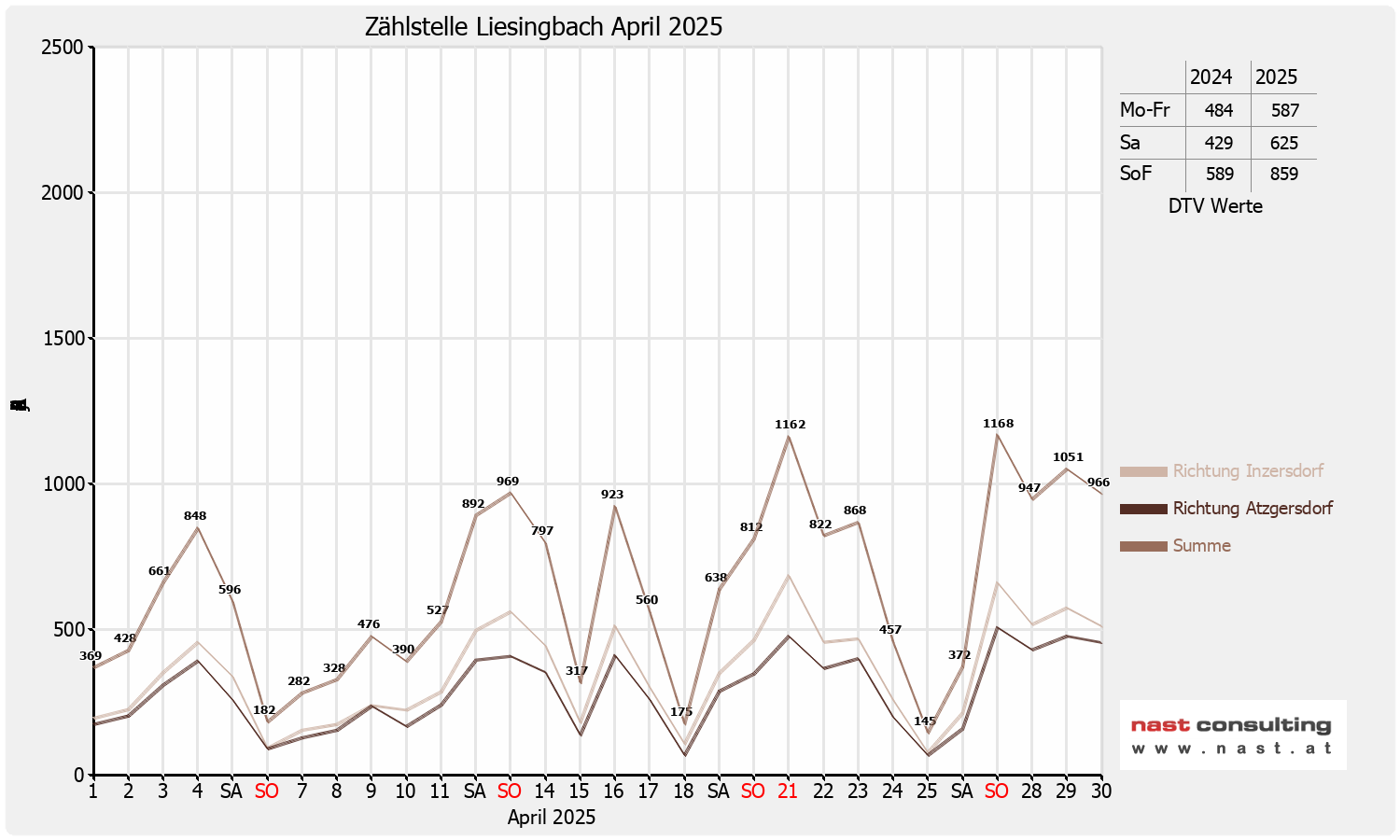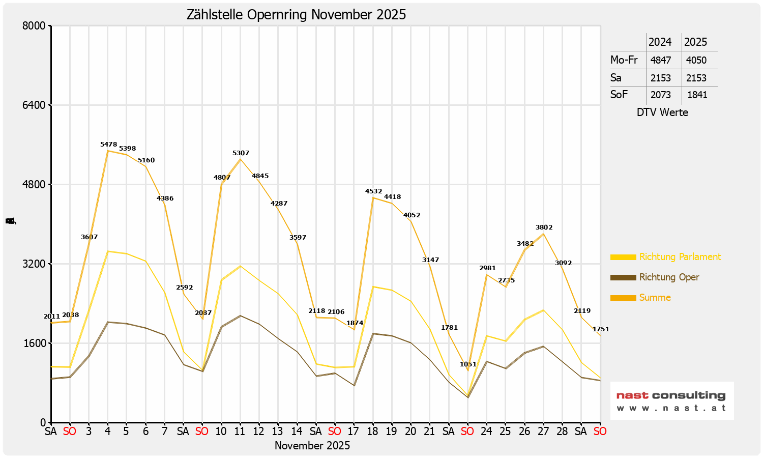 Im „Querschnitt Donau“ sind die Zählstellen Steinitzsteg, Friedrich-Engels-Platz, Maria-Resituta-Platz, Lassallestraße, Praterbrücke, Kraftwerk Freudenau inkludiert.