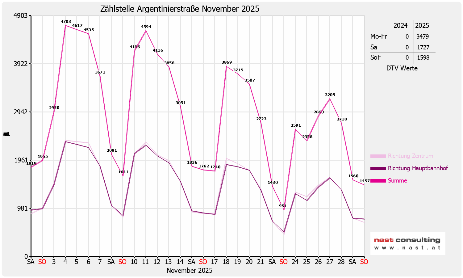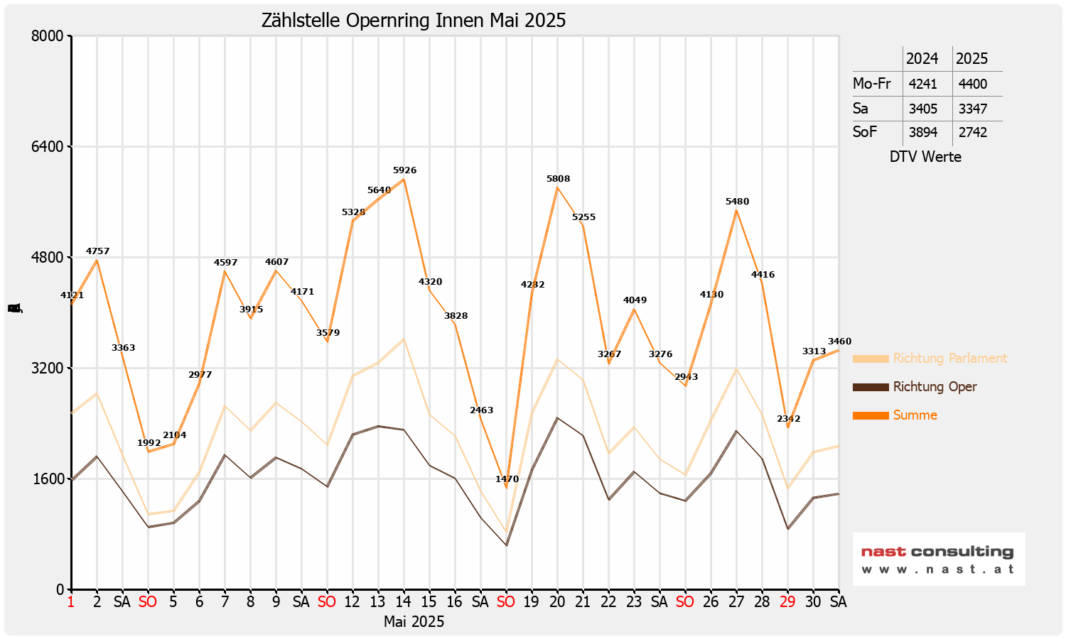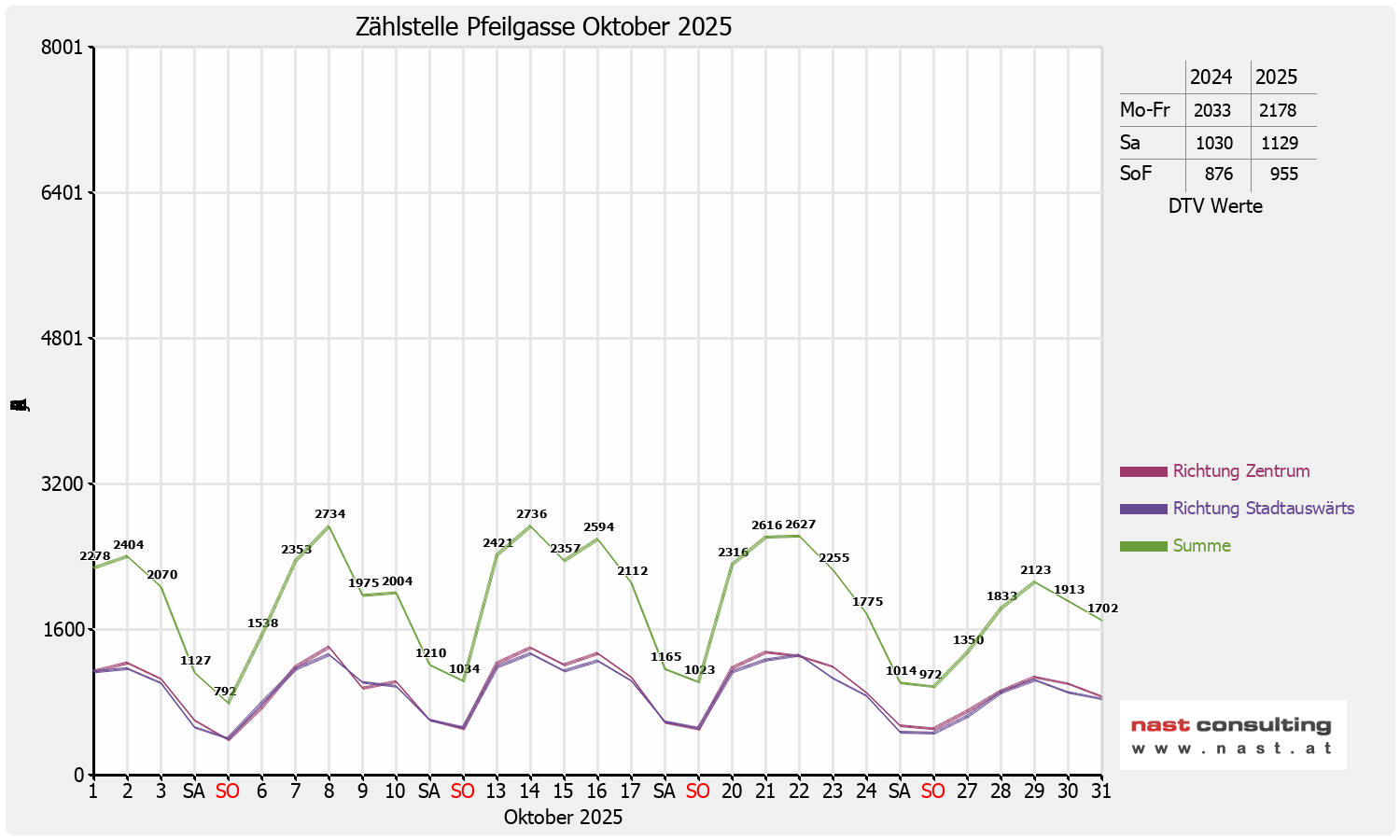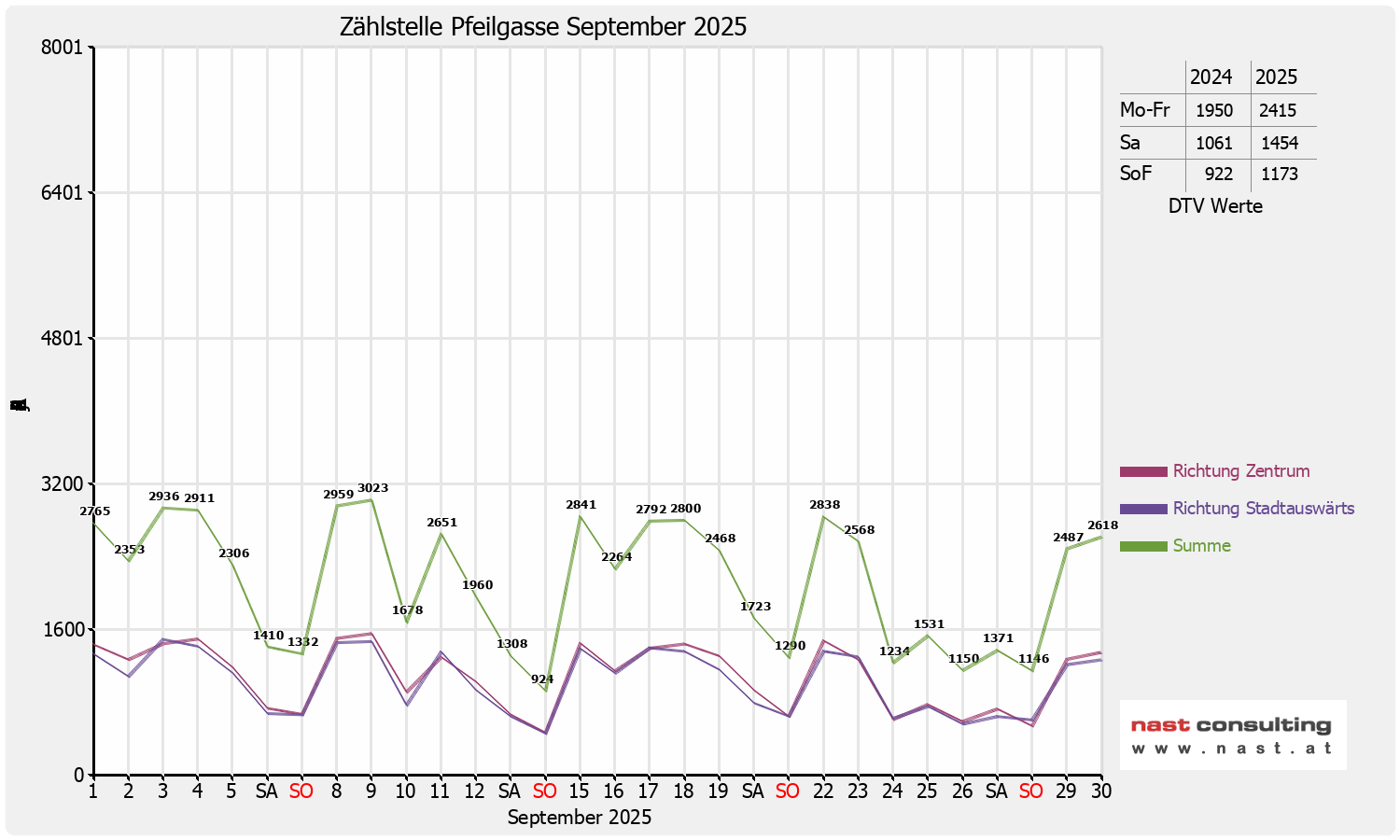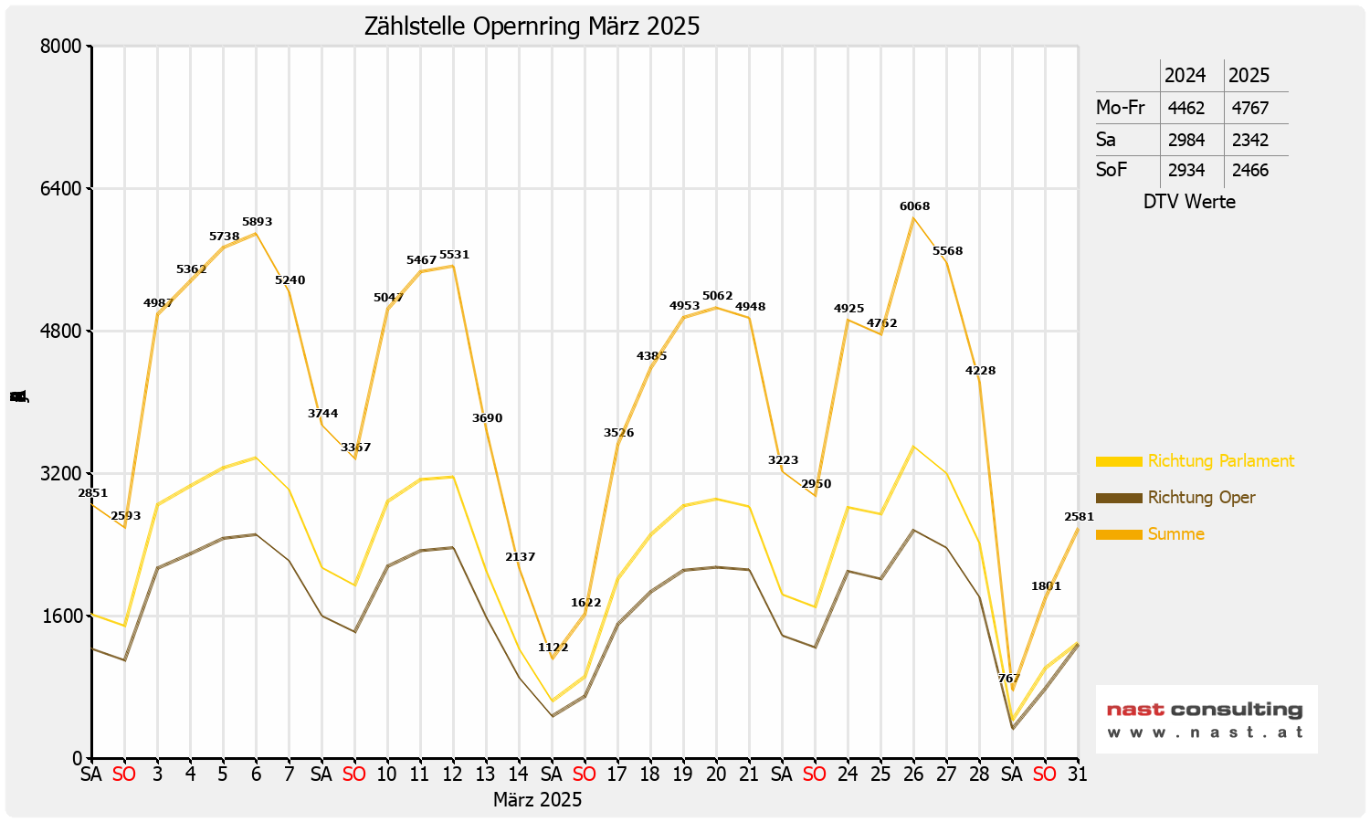 Im „Querschnitt Donau“ sind die Zählstellen Steinitzsteg, Friedrich-Engels-Platz, Maria-Resituta-Platz, Lassallestraße, Praterbrücke, Kraftwerk Freudenau inkludiert.